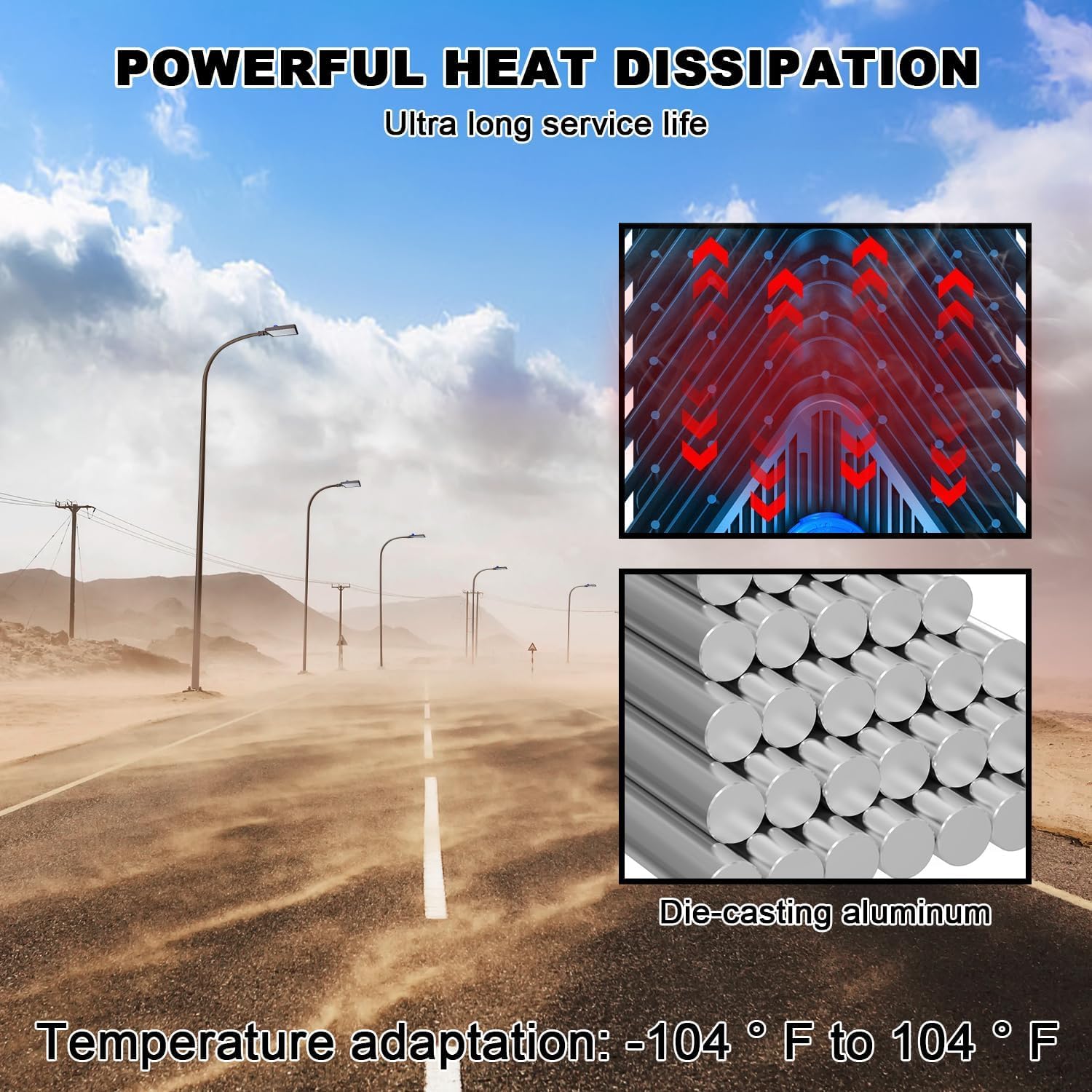 Commercial grade lighting:The 480W photocell outdoor light is made of thickened aluminum material, which has excellent strength, corrosion resistance, and weather resistance, ensuring the long-term healthy operation of parking lot lights in outdoor