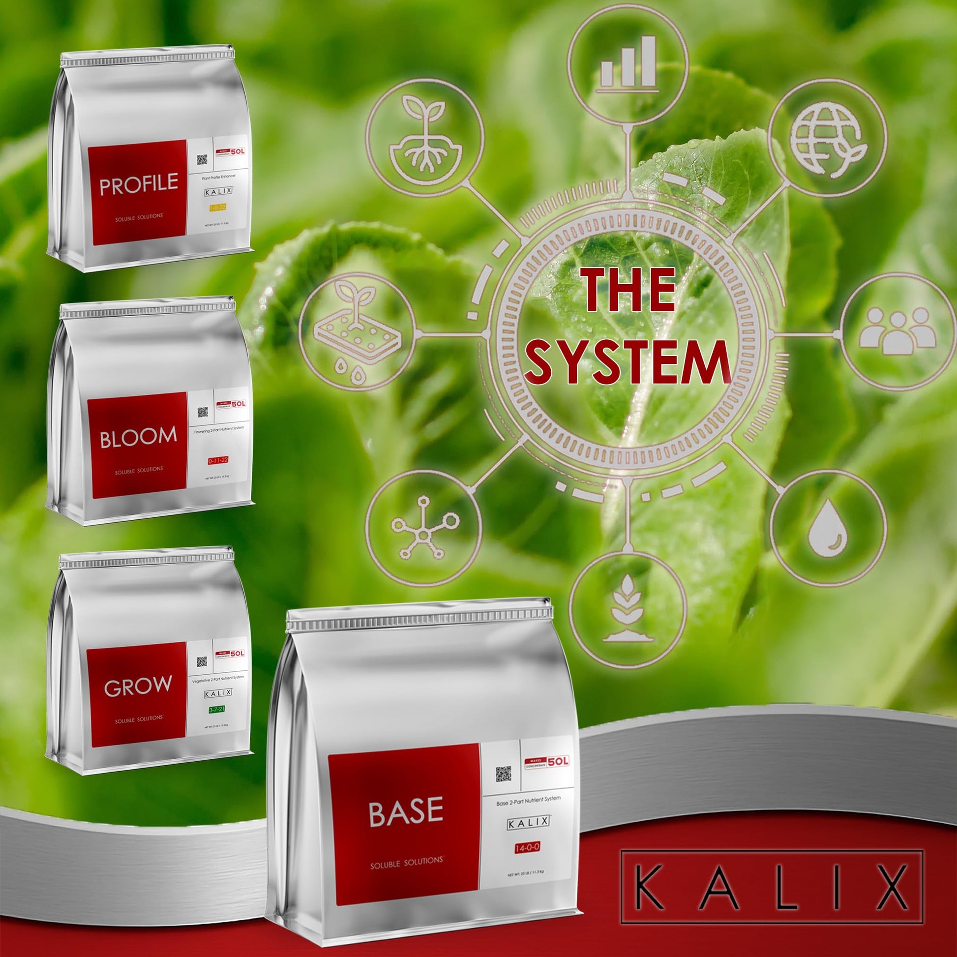 Compatible with KALIX GROW and BLOOM in 2-Part Feeding Use BASE as part of The SYSTEM to maintain stable nutrient availability throughout all stages. Mixes clean into concentrate stock tanks or direct feeds—never combine dry.