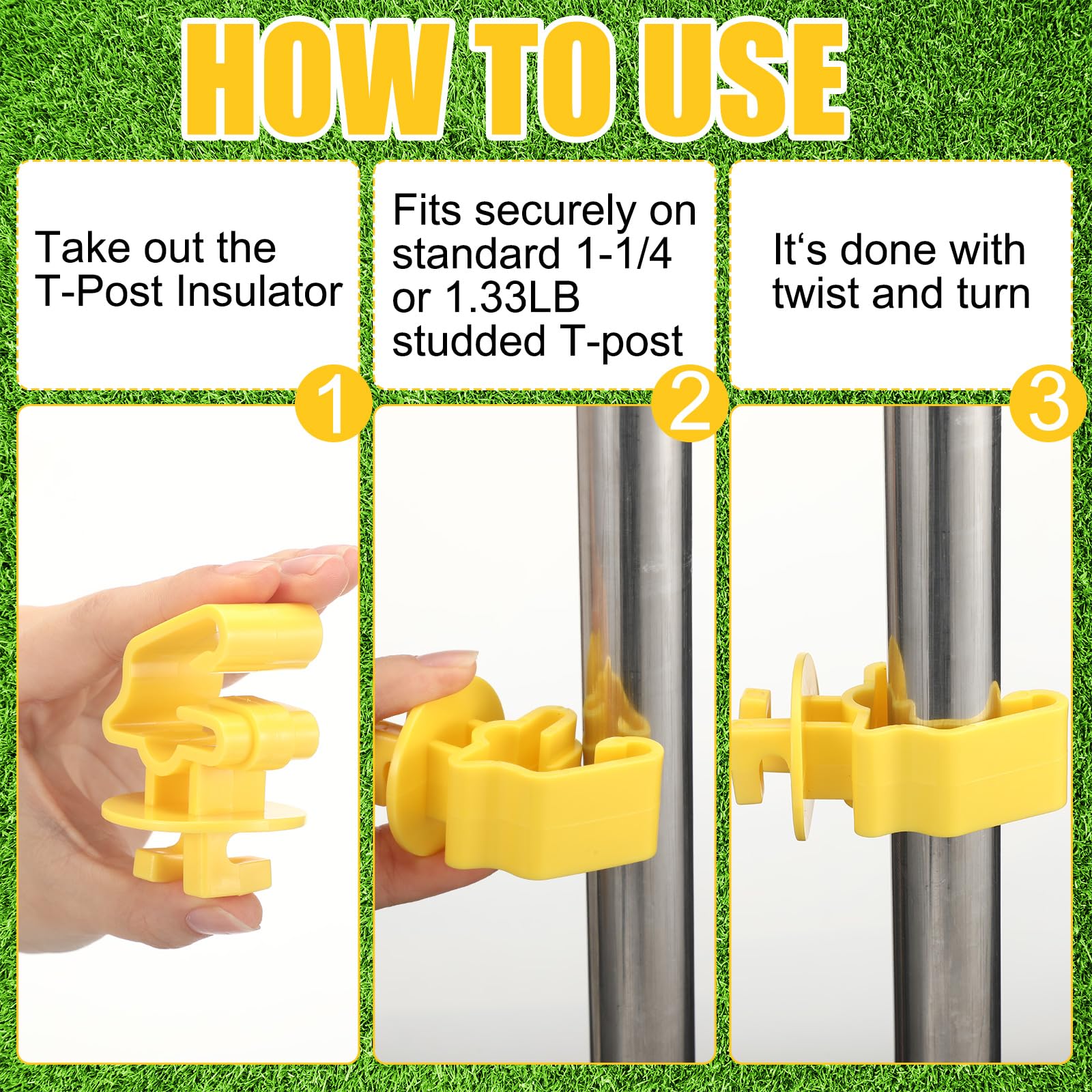 Package Includes: you will get 1 roll of electric fence wire for livestock, 25 pieces of black fence insulators, 1 piece of socket tool, and 25 pieces of yellow T post insulators, enough quantity for your daily use, you can also share some with your friends
