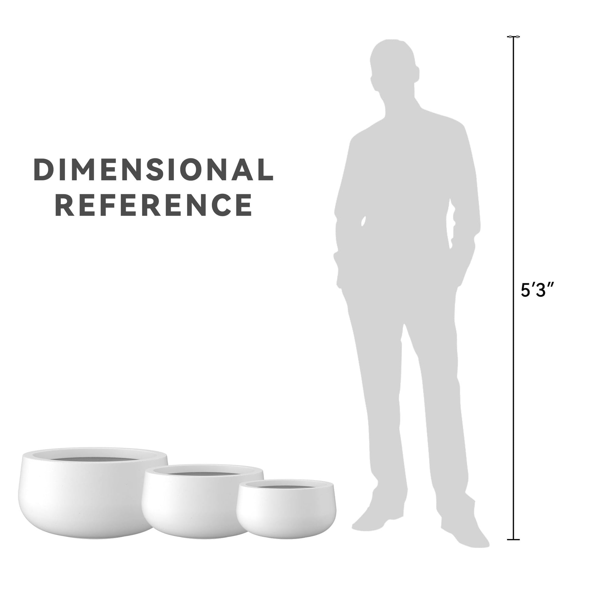 Kante 19.6",15.7",11.8" Dia Round Concrete Planters Set of 3, Outdoor Indoor Garden Plant Pots with Drainage Hole and Rubber Plug, Modern Curvaceous Design, Pure White