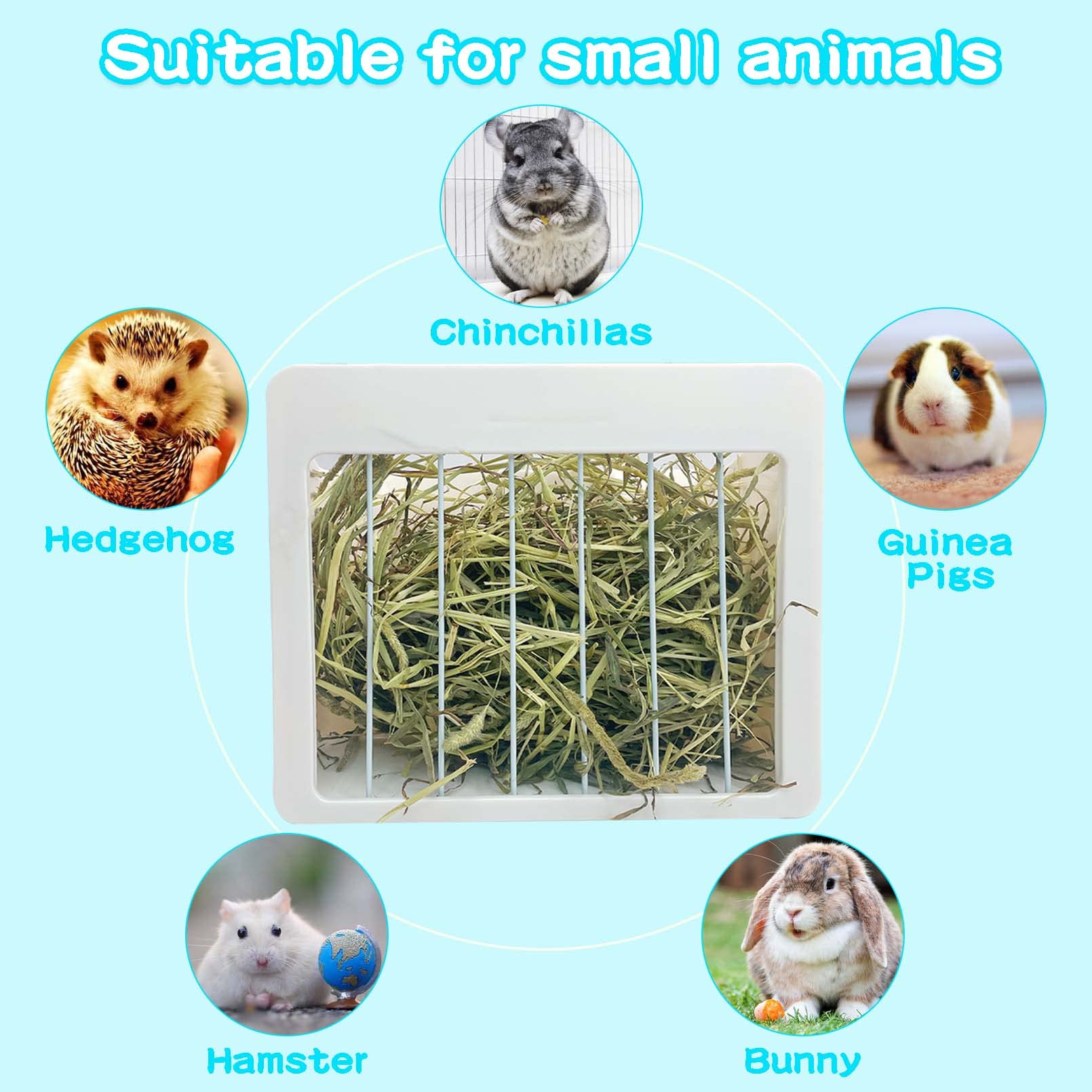 [Dimensions] Rabbit hay feeder measures approximately 9.8*5.5*7.7 inches (L*W*H) and is suitable for rabbits, guinea pigs, chinchillas and other similarly sized pets. Please pay attention to the measuring chart of the grass dispenser and choose according to the size of your pet cage