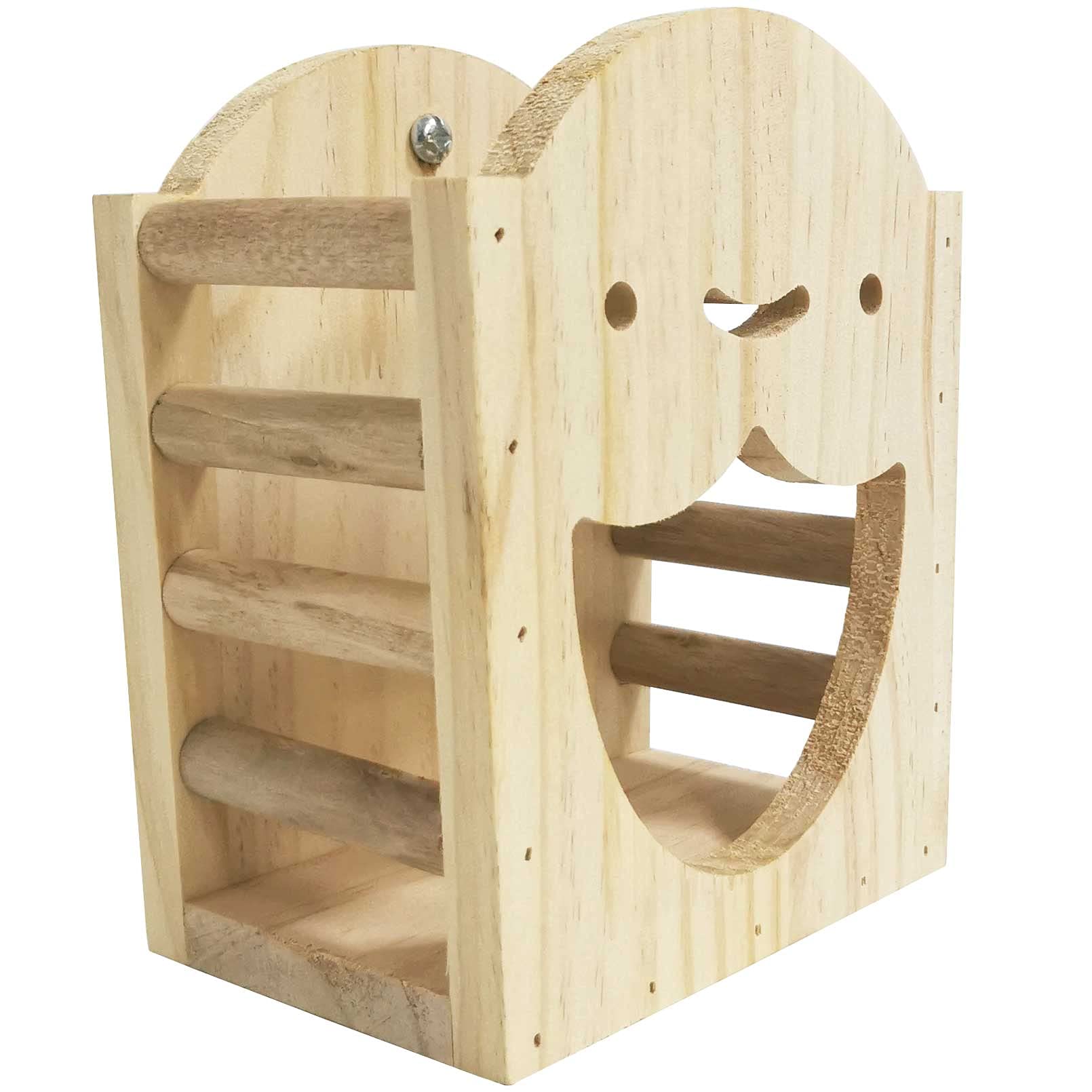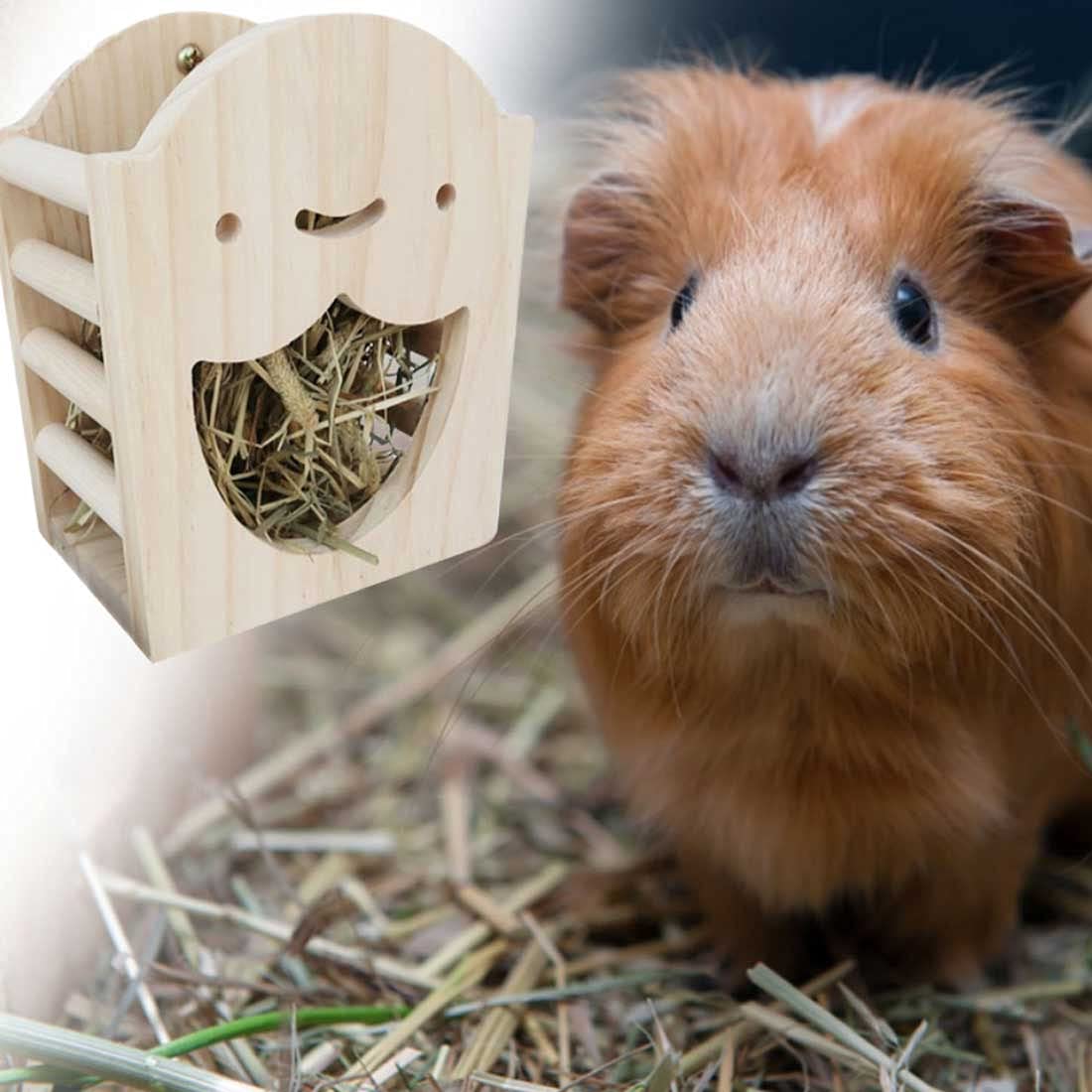 [LOVELY SHAPE] The shape of this feeder is more fun and cute than a lot of wooden grass racks.Lovely smiley face, ladders on both sides for easy feeding and smaller pets to comfortably climb up the feeder to take a nibble.