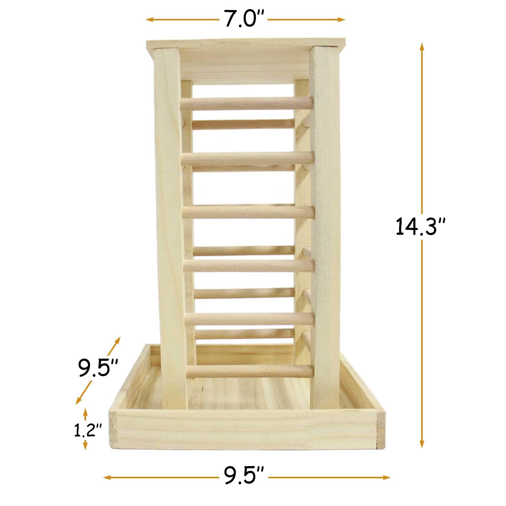 [LARGE VOLUME] The size of the Wooden Hay Feeder is about 9.5〞Lx9.5〞Wx14.3〞H.Our hay manager is big enough to hold the hays or grass for your small pets.Big enough to fill one day's hay for your pets.