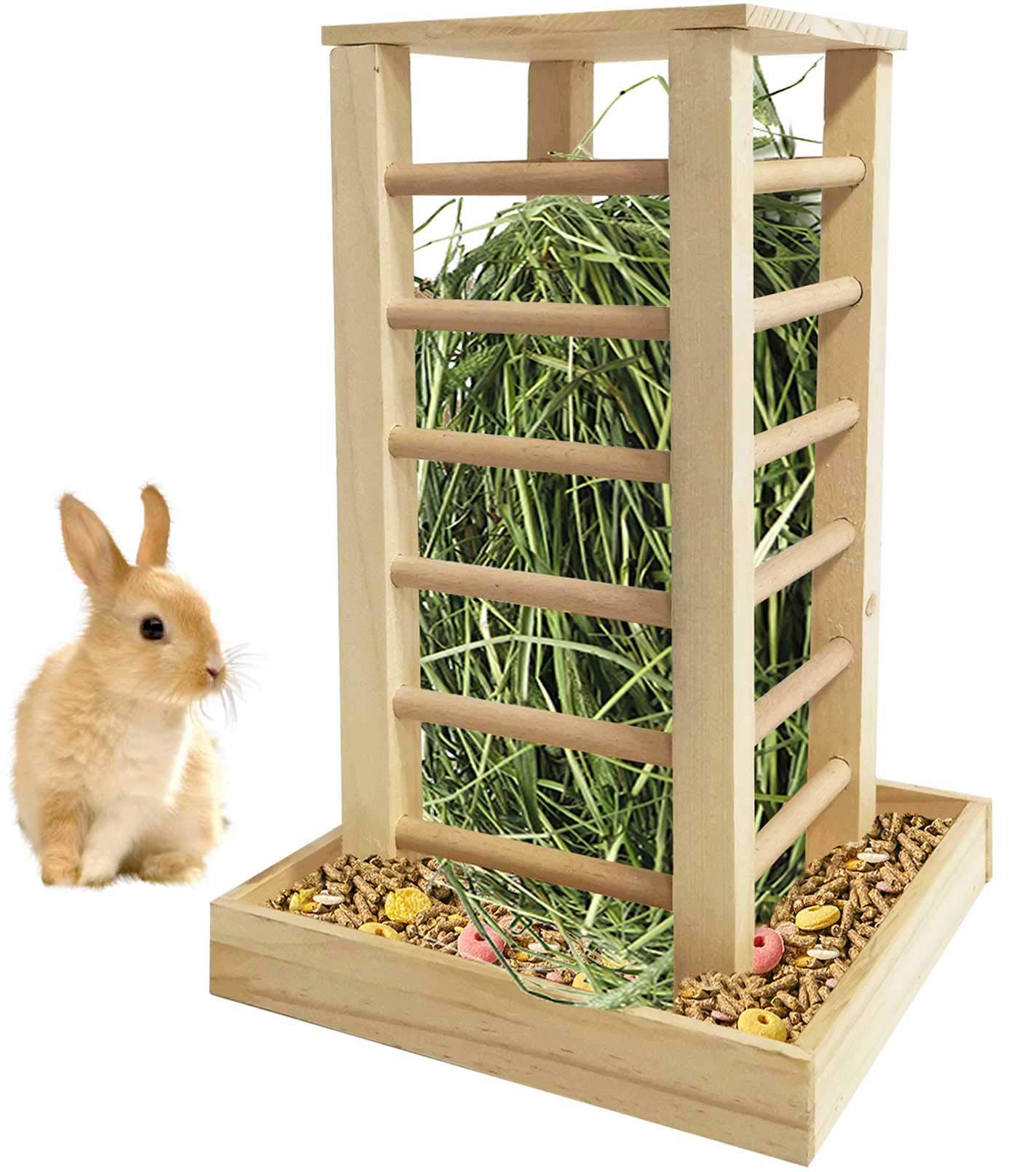 [NATURAL WOOD HAY DISPENSER] This Rabbit Hay Dispenser is made from natural wood, which is very healthy for pets,It also brings your pet closer to nature, adding a natural look to your pet's home.