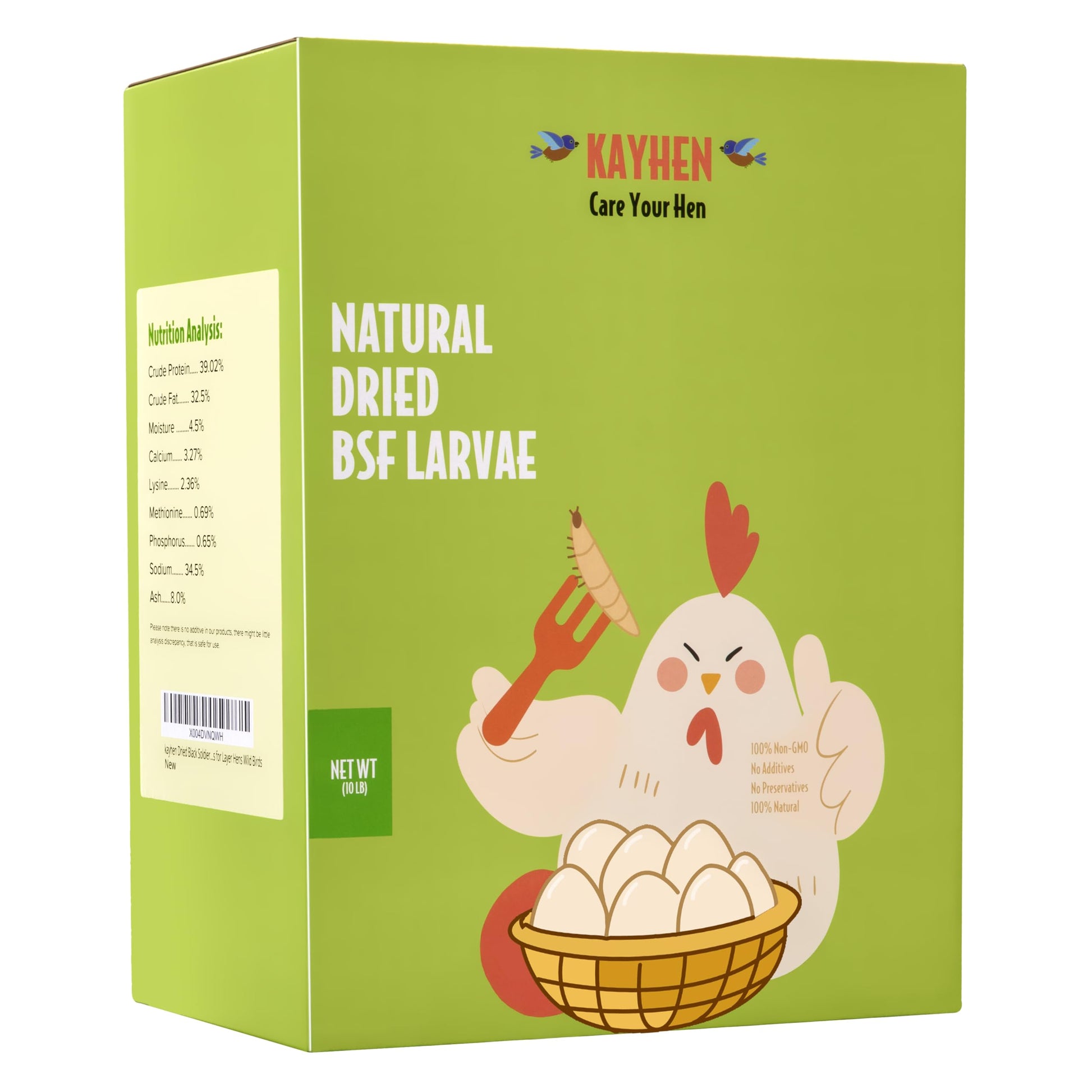 KAYHEN Dried Black Soldier Fly Larvae 10LB Non-GMO BSF Larvae for Chickens More Calcium Than Mealworms High-Protein Chickens Treats for Layer Hens Wild Birds Ducks