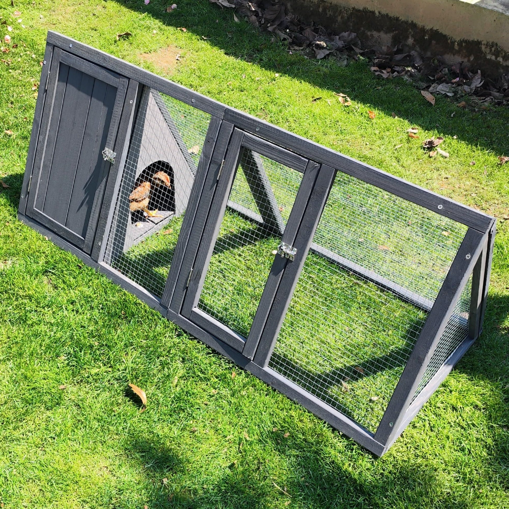 【Indoor & Outdoor Protection】This outdoor rabbit hutch weatherproof, so when it rains the critters can hide in the rabbit cage's own nesting box to prevent them from getting wet and cold. When it's sunny, they can return to the runway to eat and bask in the sun. The wire mesh also prevents predators from invading, providing a safe and comfortable space for your pet