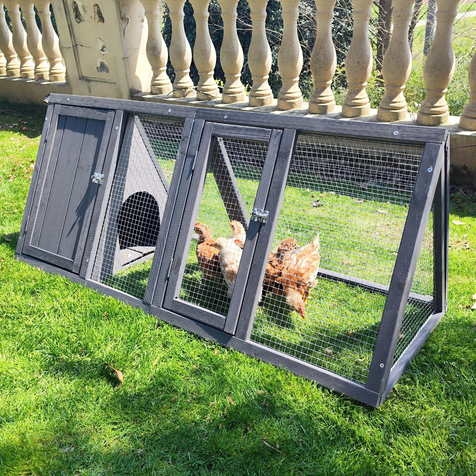 【Well Ventilated】The rabbit cage small chicken coop with run is lightweight & easy to move with mesh wire fencing and two openable doors, which maintains proper ventilation while allowing you to grab your beloved pet out of the chicken run at any time to check on its condition and facilitate interaction