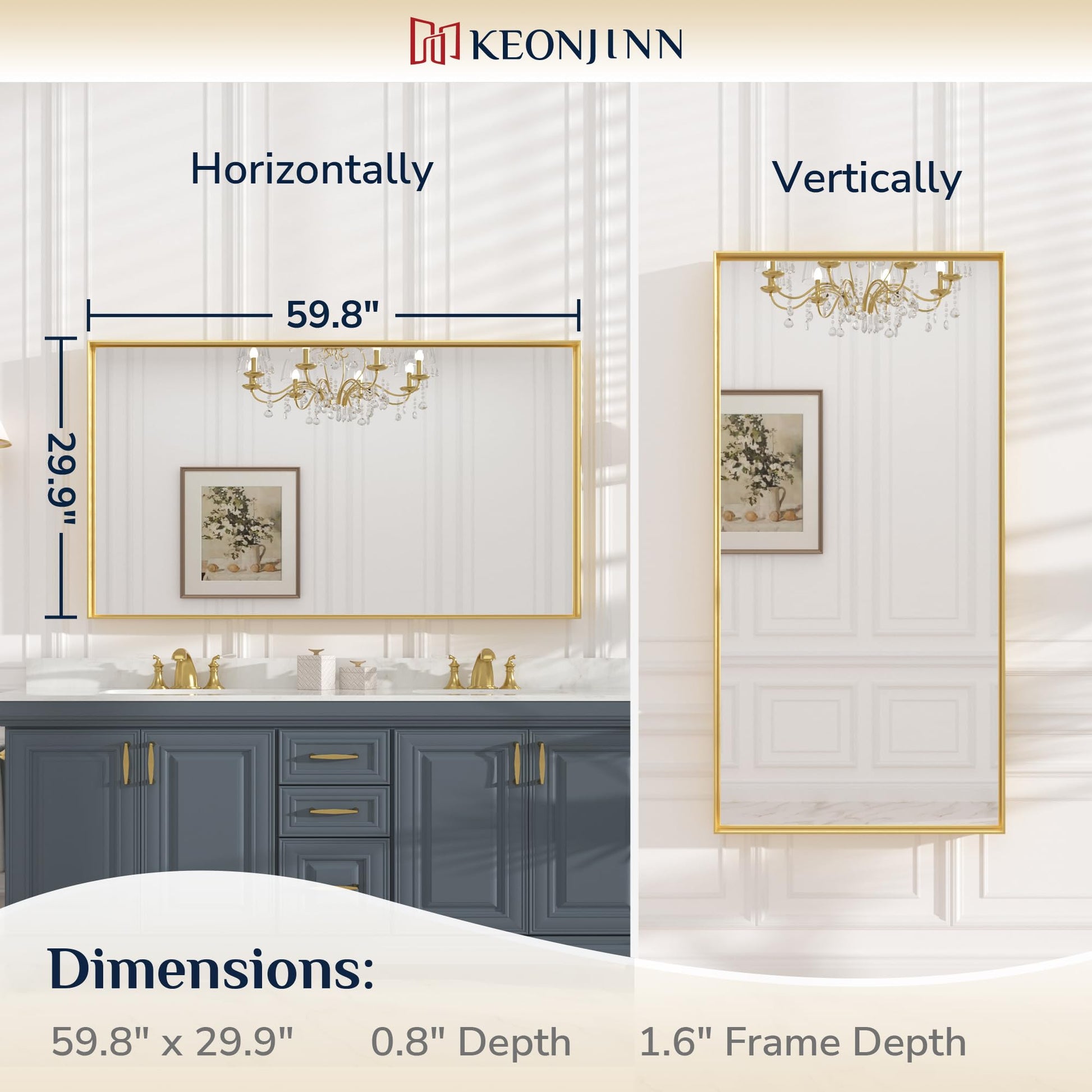 【Modern Design】 The rectangular wall mirror has the most chic dark brushed gold finish, coming with a 1.57" depth Aluminum alloy frame. Square corner mirror features the minimalist style and able to add texture to your space. Give an instant premium upgrade to any room with Keonjinn gold metal framed mirror.