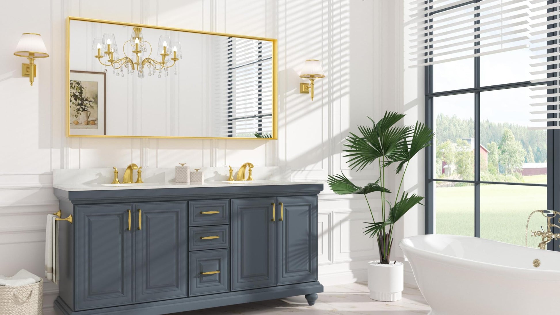 【Exceptional Quality】Our dark gold rectangle bathroom mirror is made of HD 5mm glass, bright and anti-distortion, which provides excellent reflection. Aluminum alloy frame and PVC shatterproof film would strengthen the floating glass for safety, waterproof and anti-corrosion in wet bathroom environments.