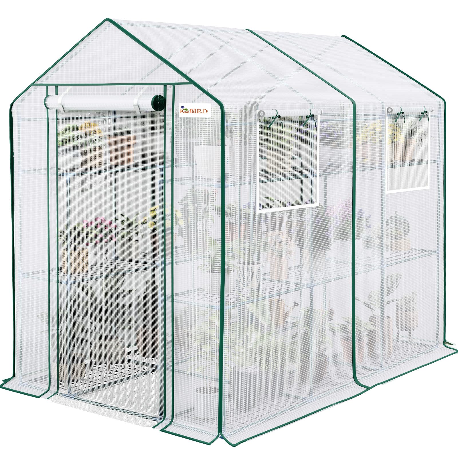 KING BIRD Premium Greenhouse for Outdoors, 84 x 56 x 77 Upgraded PE Cover & Steel Frame Walk in Hot House, w/ Zippered Screen Windows Mesh Door, 3 Tiers 20 Shelves for Outside Garden, White