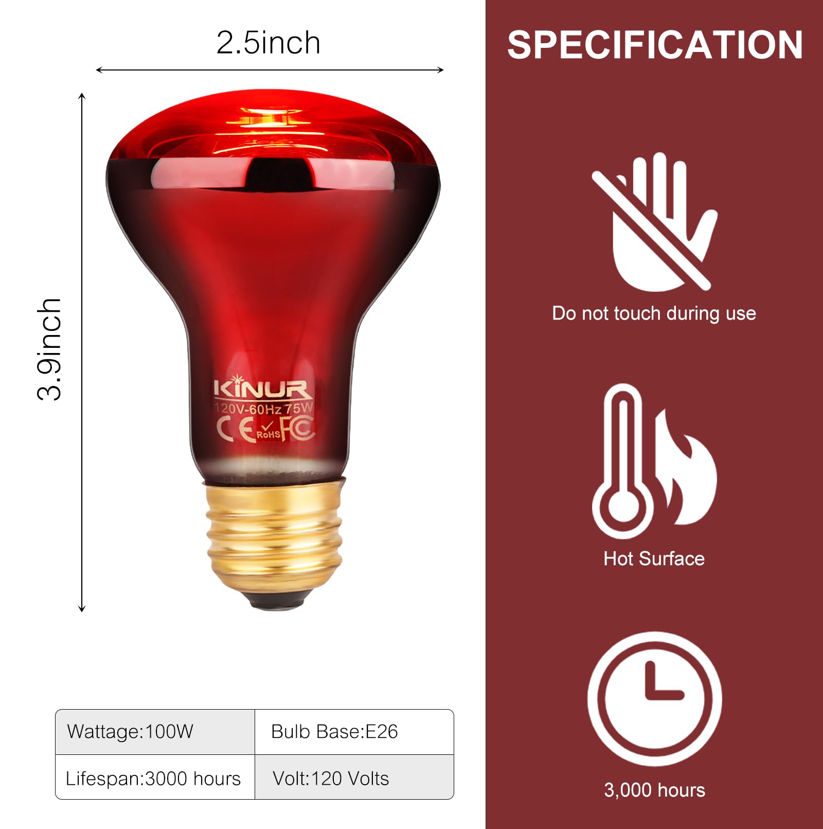 【Wide Application】The infrared heat bulb is perfect for a wide variety of reptiles and amphibians, including bearded dragons, tortoises, turtles, geckos, snakes (pythons, boas, etc.), iguanas, lizards, chameleons, frogs, toads etc. Our red heat lamp is also great for cats and dogs, as well as an array of birds (chicks, chickens, ducks, parrots, cockatiels, etc.), and many other animals