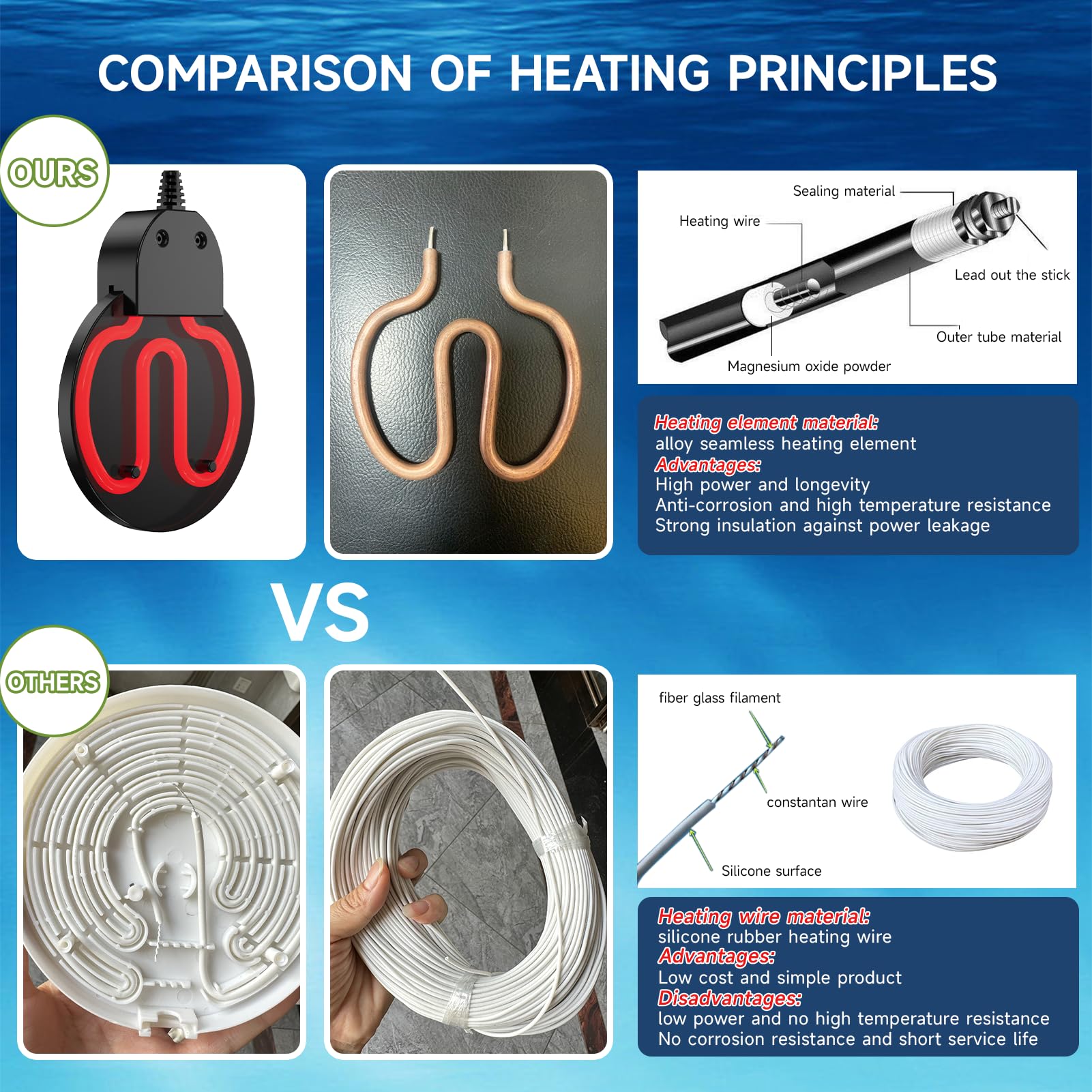 2. This versatile livestock tank heater, water trough heater, and submersible heater offer robust performance, keeping water at the ideal temperature for animals and birds, including in bird feeders and chicken coops. Simply fill the container with water, fully submerge the deicer, and then power it on—it's that easy!