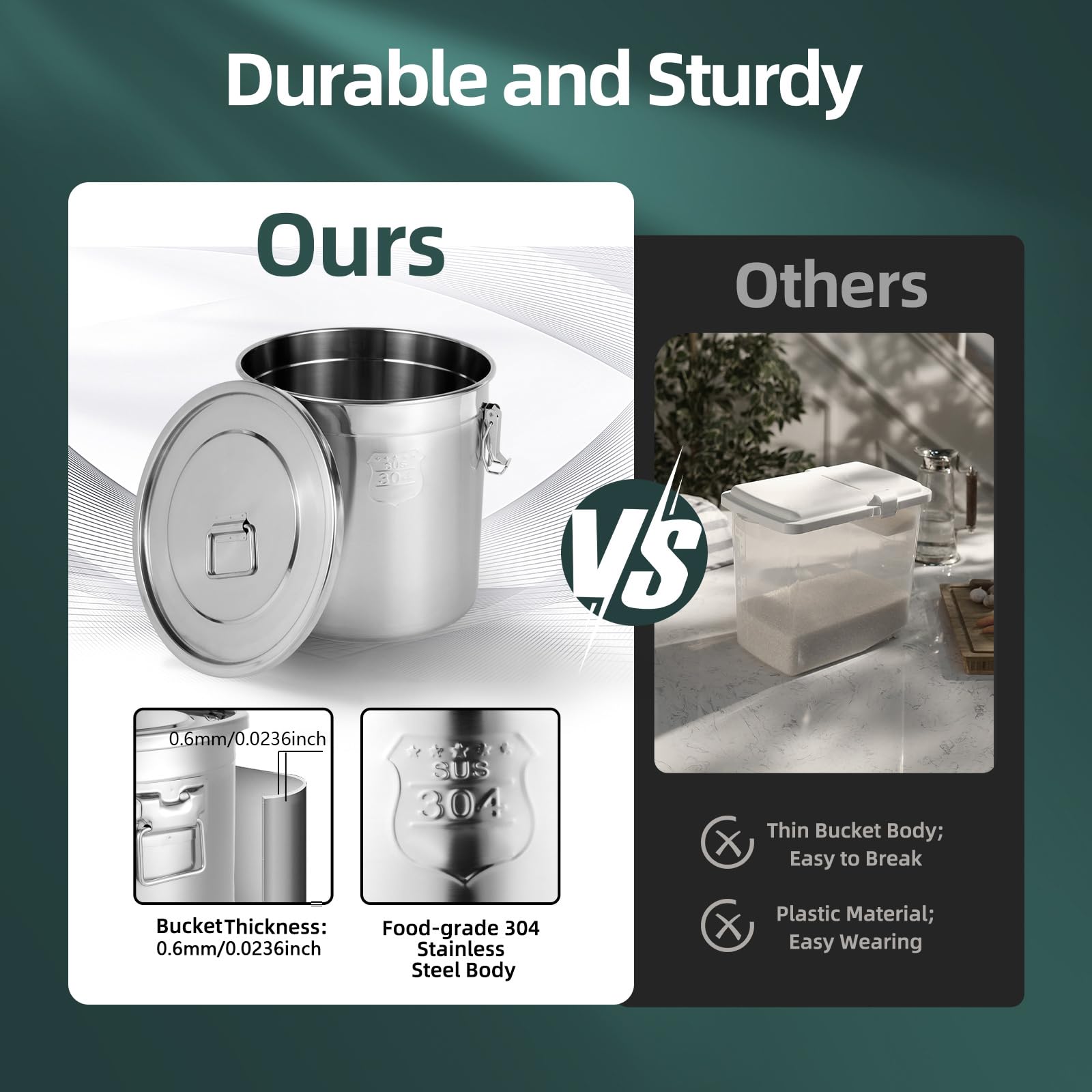 đ„ăStainless Steel Storage CanisterăThis 21L large capacity rice canister is made of food grade 304 stainless steel material, which is durable, heat-resistant and rust-proof, so you can store your food with confidence. You can use it for a long time without replacing it with a new one, saving a lot of money