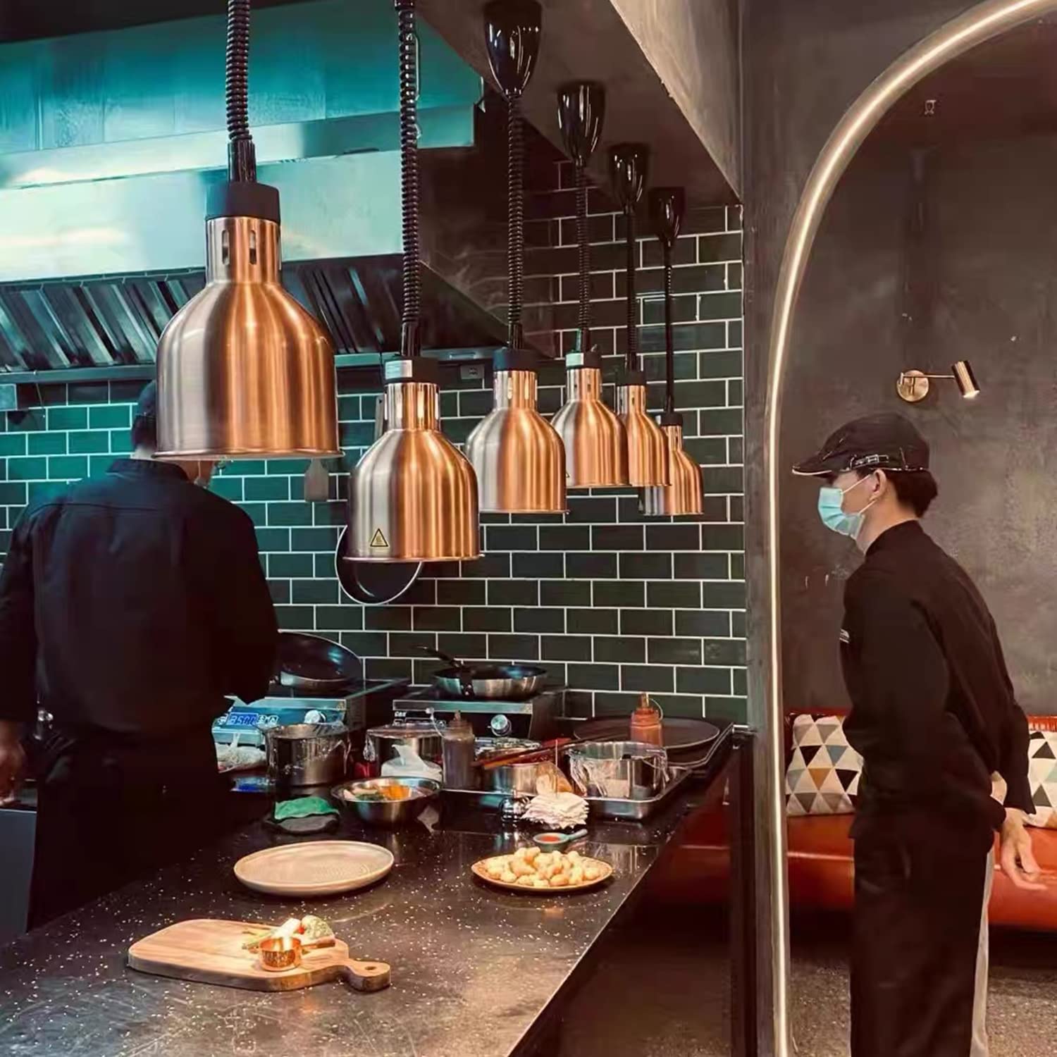 KOUWO Commercial Food Heat Lamp Infrared Food Warmer Hanging Heating Lamps for Food Service Restaurant Buffet(Copper)