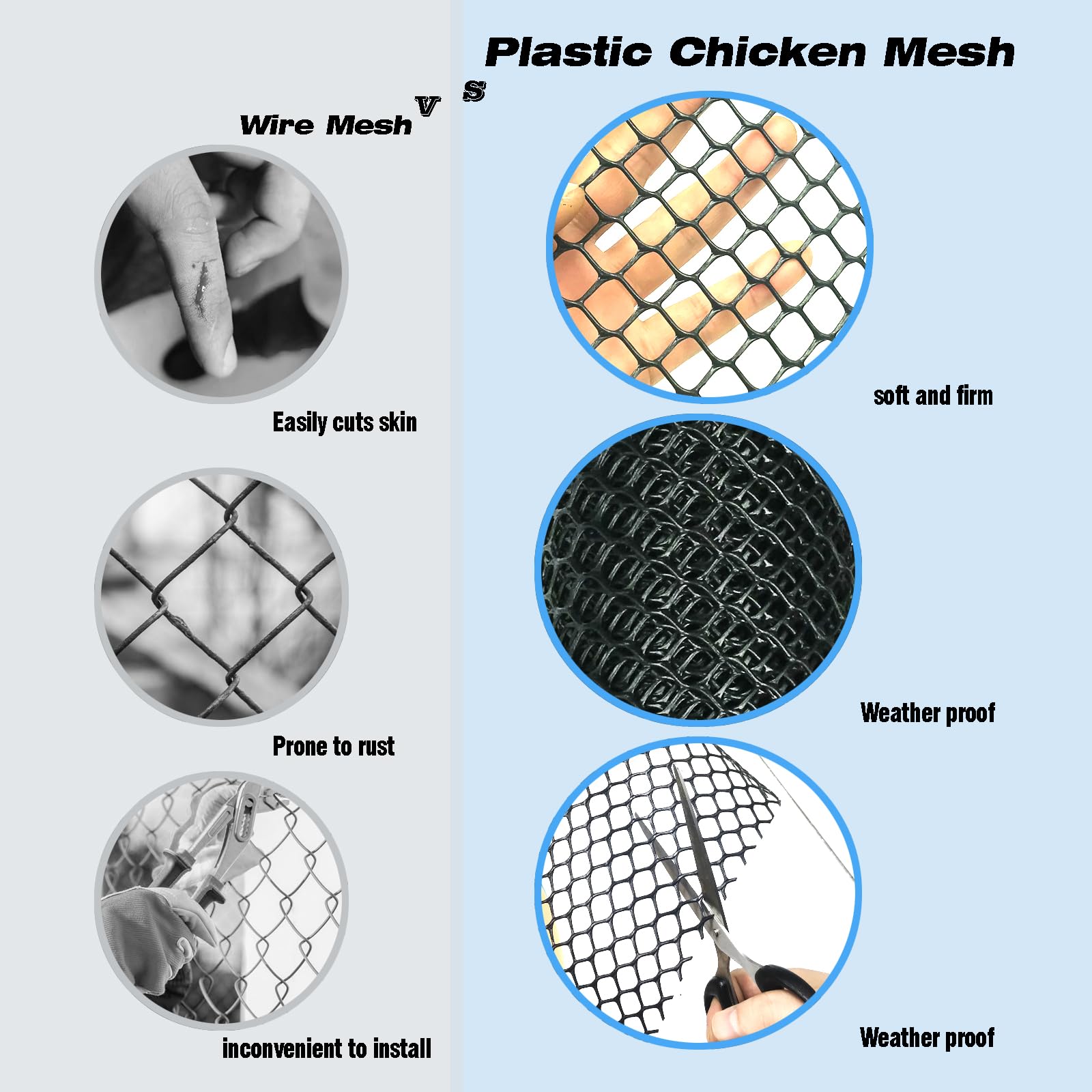 Durable & Weather-Resistant Material: Made from high-quality ABS plastic, this Plastic chicken wire mesh is soft, wear-resistant, and built to withstand harsh weather conditions. Its durability ensures long-term use in various environments