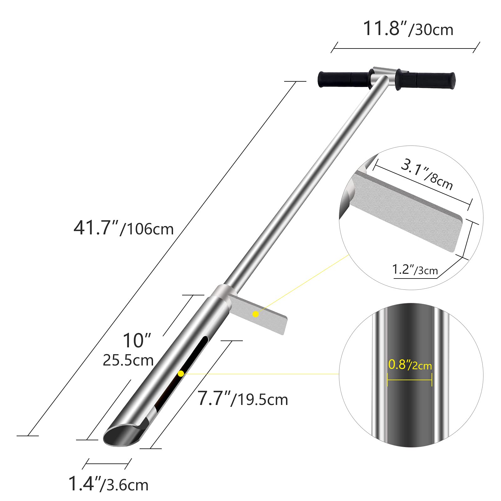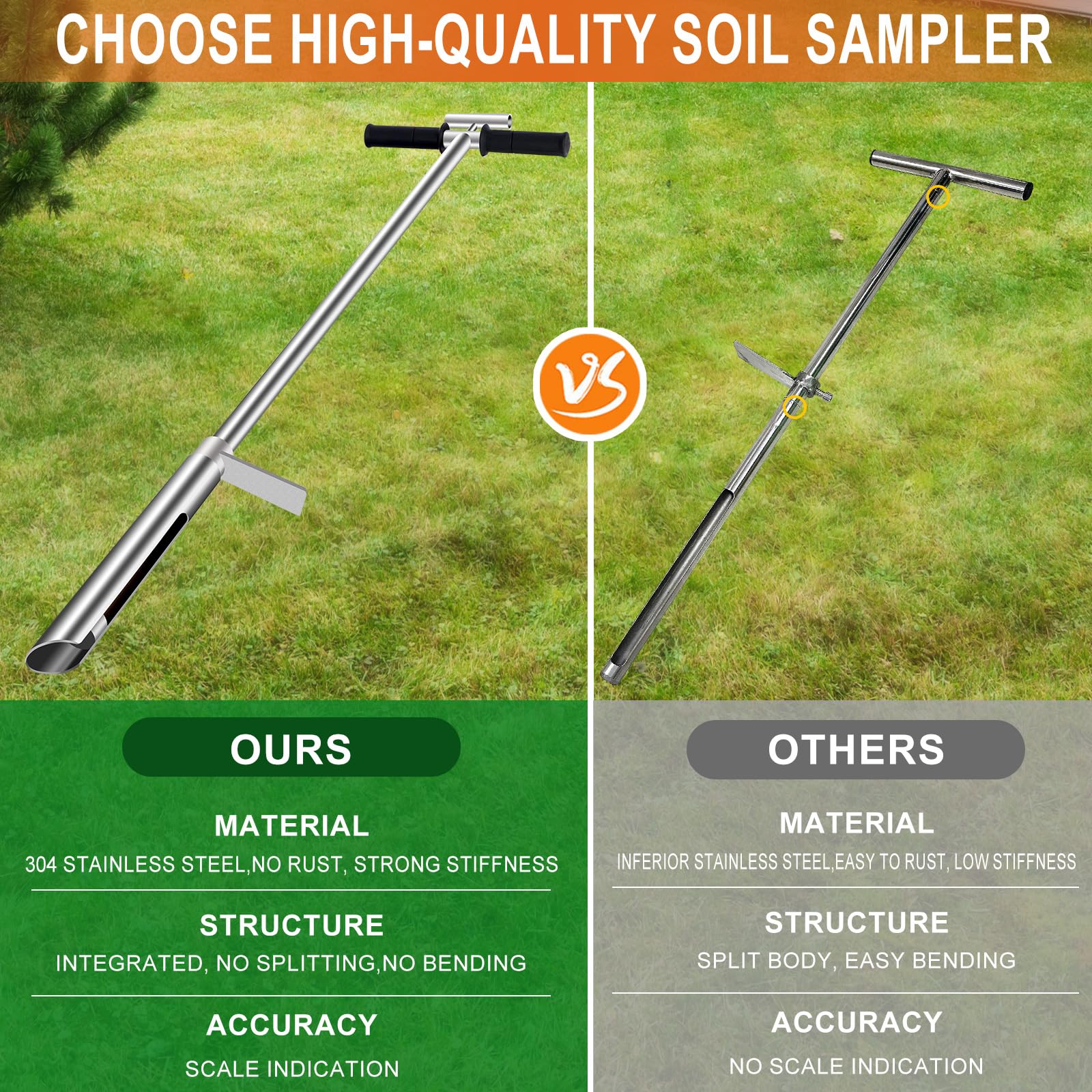 40”(1 Meter) Soil Sampler Probe Tool: LAKAGO soil sample probe total length is 40”, longer than other soil probe, one-piece, more easy to drill deeper soil from soil for exploration.