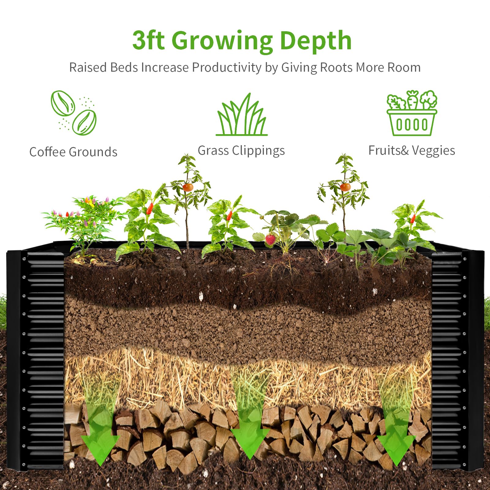 Moisture-Resistant and Durable: Our galvanized steel raised garden bed offers superior zinc coating for enhanced protection against rust, crafted from premium galvanized steel for unparalleled durability and resistance to corrosion. Engineered for optimal plant health, the high-quality galvanized material also reduces the risk of root rot and improves soil quality.