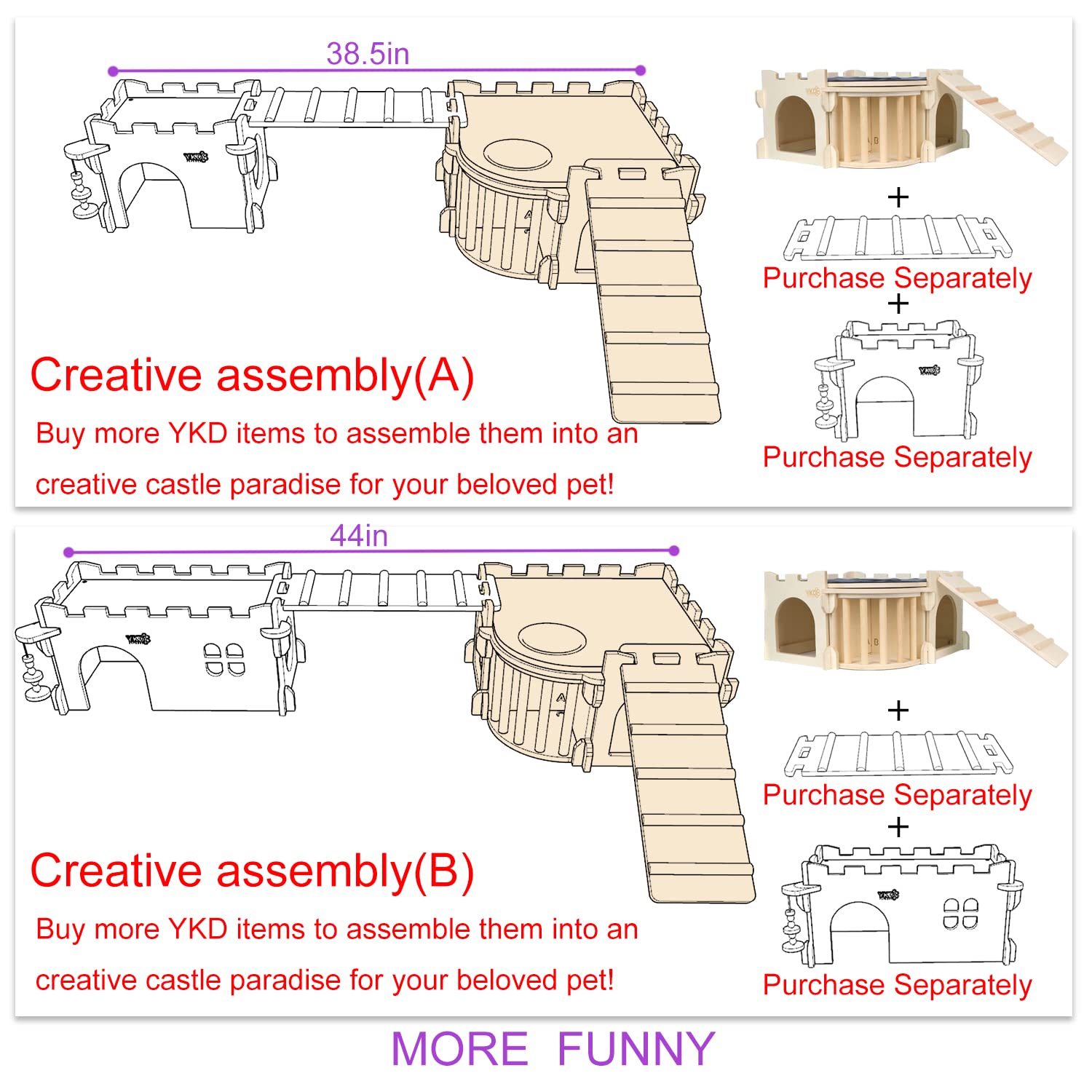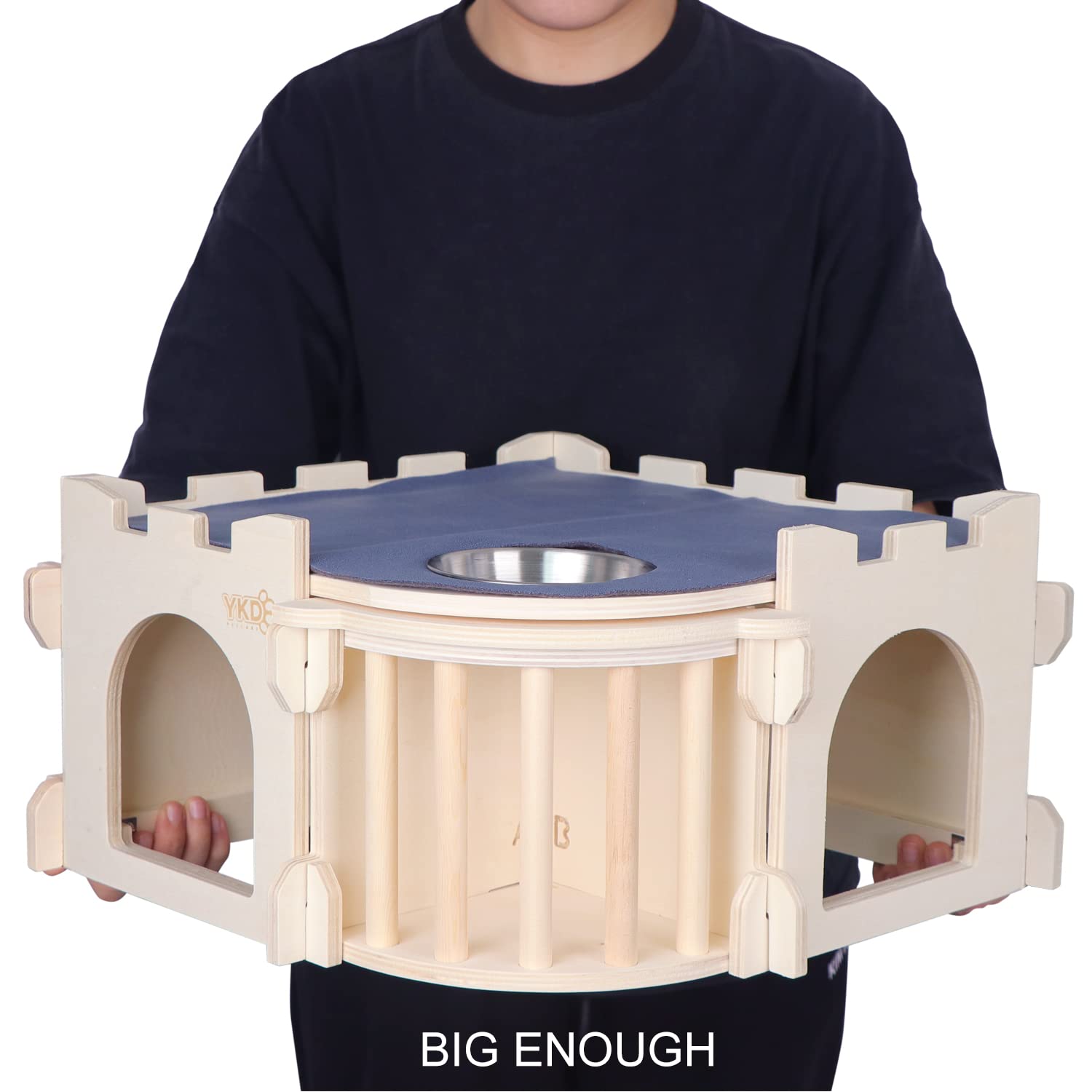 The house is mde from european imported birch plywood, which is very breathable & healthy for rodents, built by the tongue and groove method without nails, and be sanded each corner to smooth. Install easily without glue or nails to avoid the pet injuries. brings reliable & enjoyable living to keep your furry friend's well-being, chewable & durable toys for your pets.