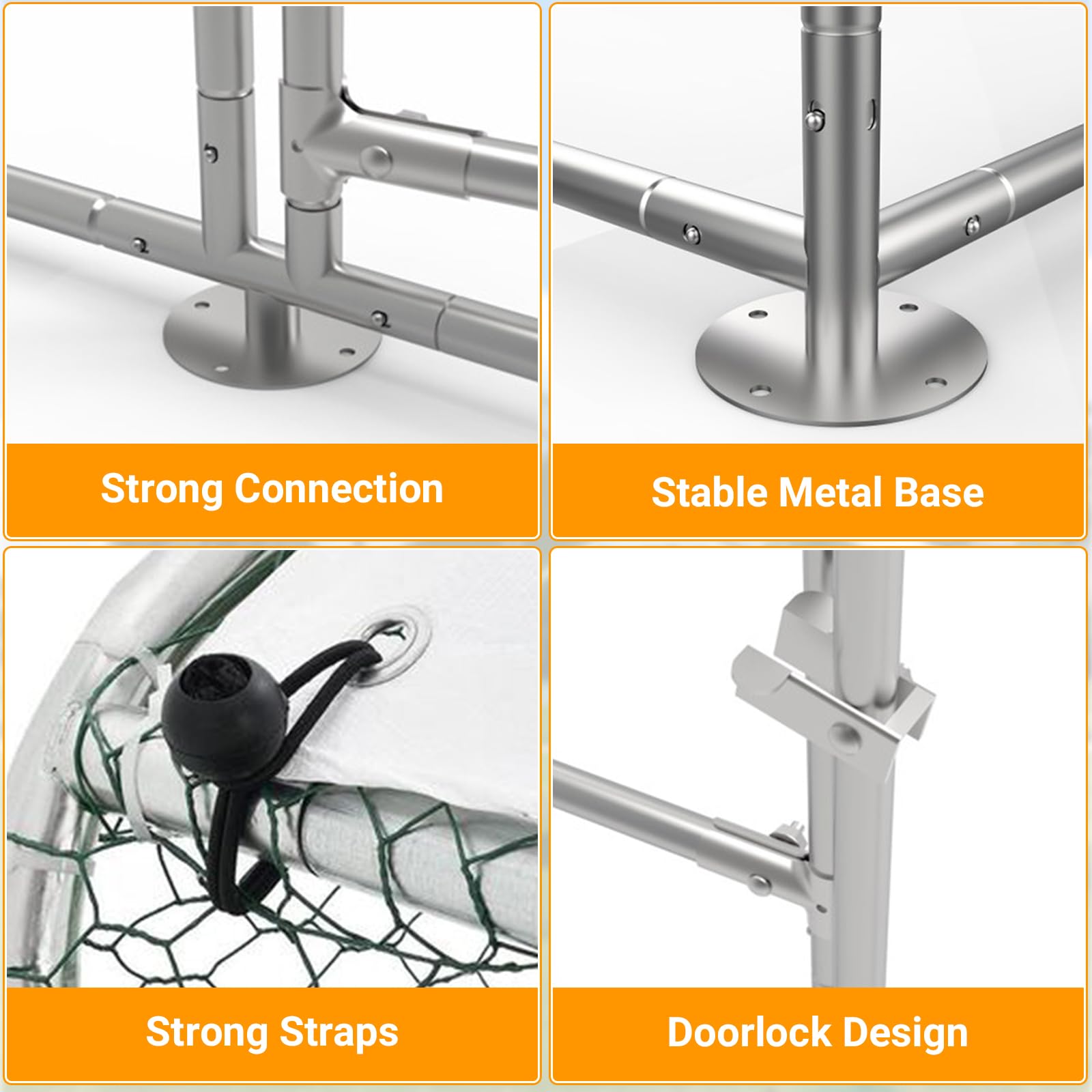 [CONVENIENT AND SECURE LOCKABLE DOOR] Designed with a sturdy gate, reinforced door, and locking function, this chicken run offers easy access while preventing chicken escape and wild animal intrusion. The narrowed gap ensures added security.