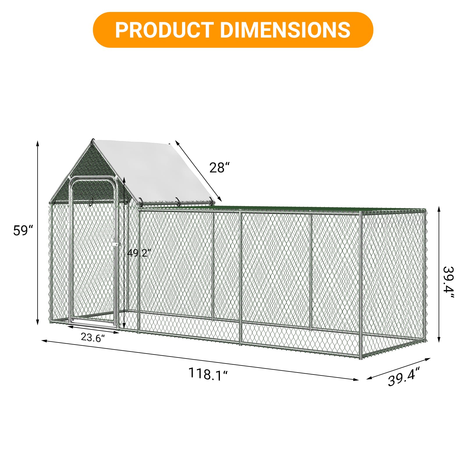 [WATERPROOF AND UV-PROOF COVER] Featuring a 240D shade cloth canopy, this chicken coop provides effective waterproof and sun protection. The metal hexagonal mesh design enhances chicken safety by preventing predators, while the steel wire mesh ensures ventilation and containment.