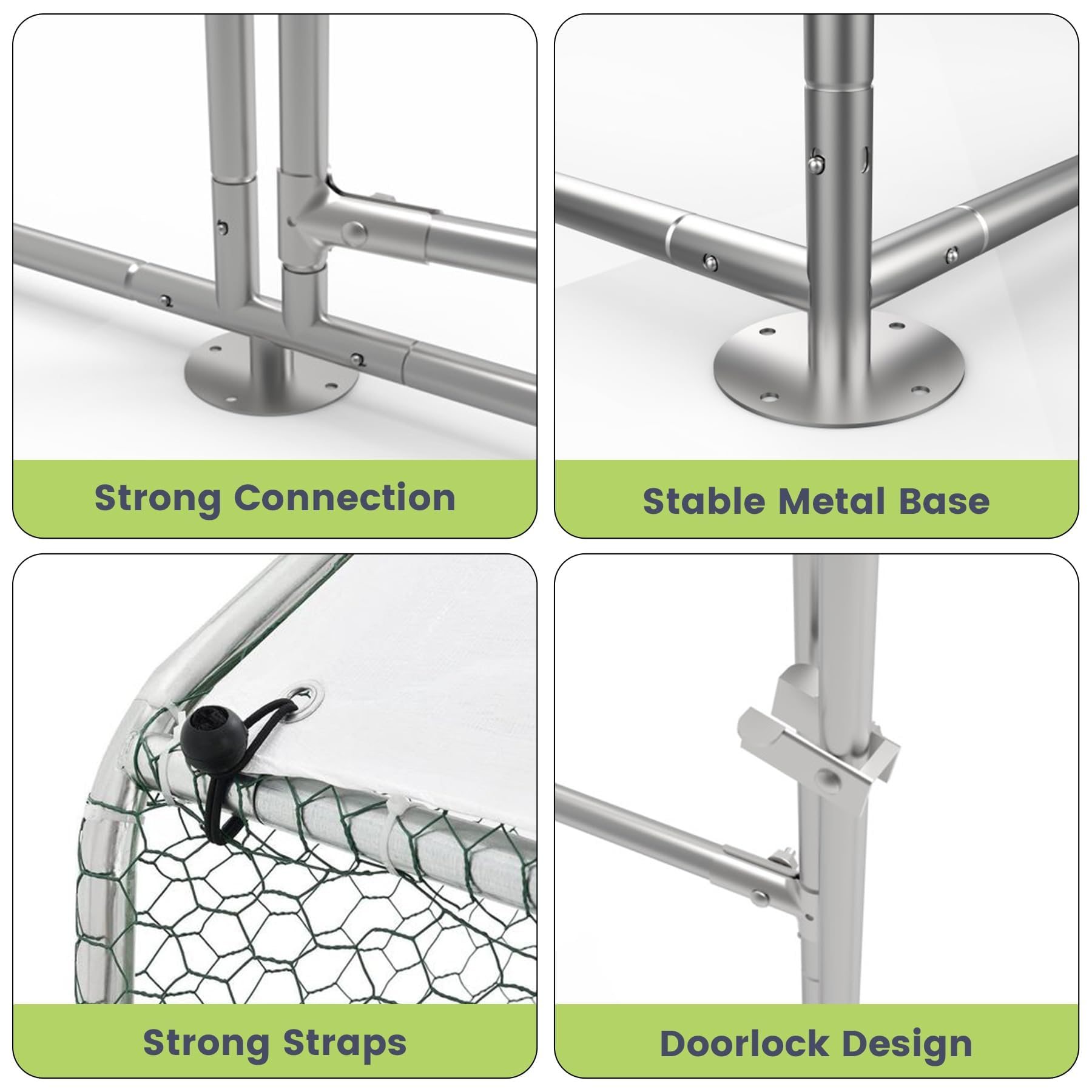 【Heavy-Duty Construction for Durability】: Our large metal chicken coop is built to last with a robust heavy steel frame and full coverage PVC-coated wire mesh, ensuring strength and durability against wear and tear. This chicken run provides a safe and secure environment for your chickens, ducks, rabbits, and other small animals, making it the perfect chicken pen for your backyard.