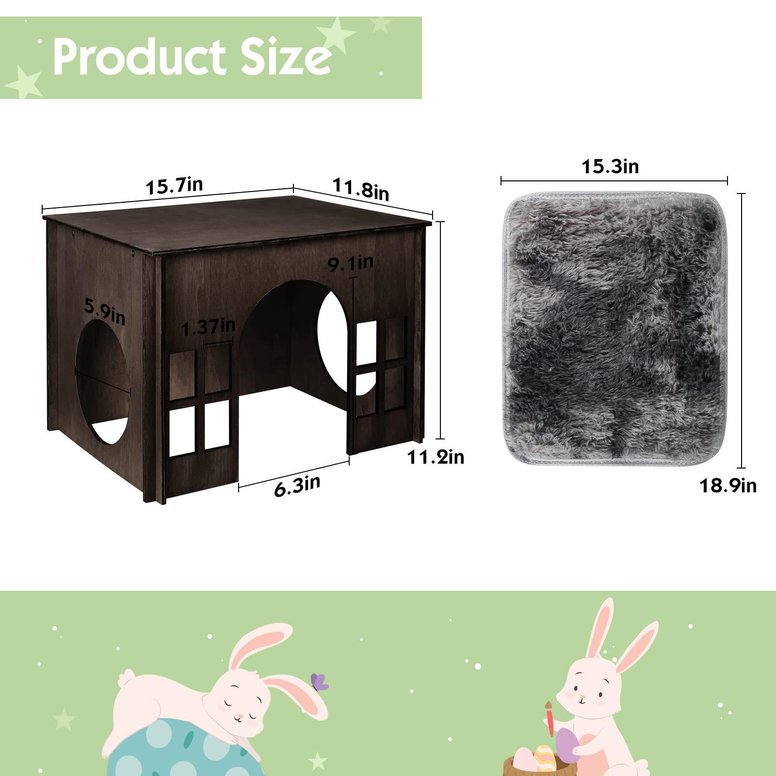 🐰【Warm & Comfortable】Our wooden rabbit house is equipped with a washable mat which is made of soft fabric, keeping your pets warm in winter and helping them sleep more soundly and comfortably.