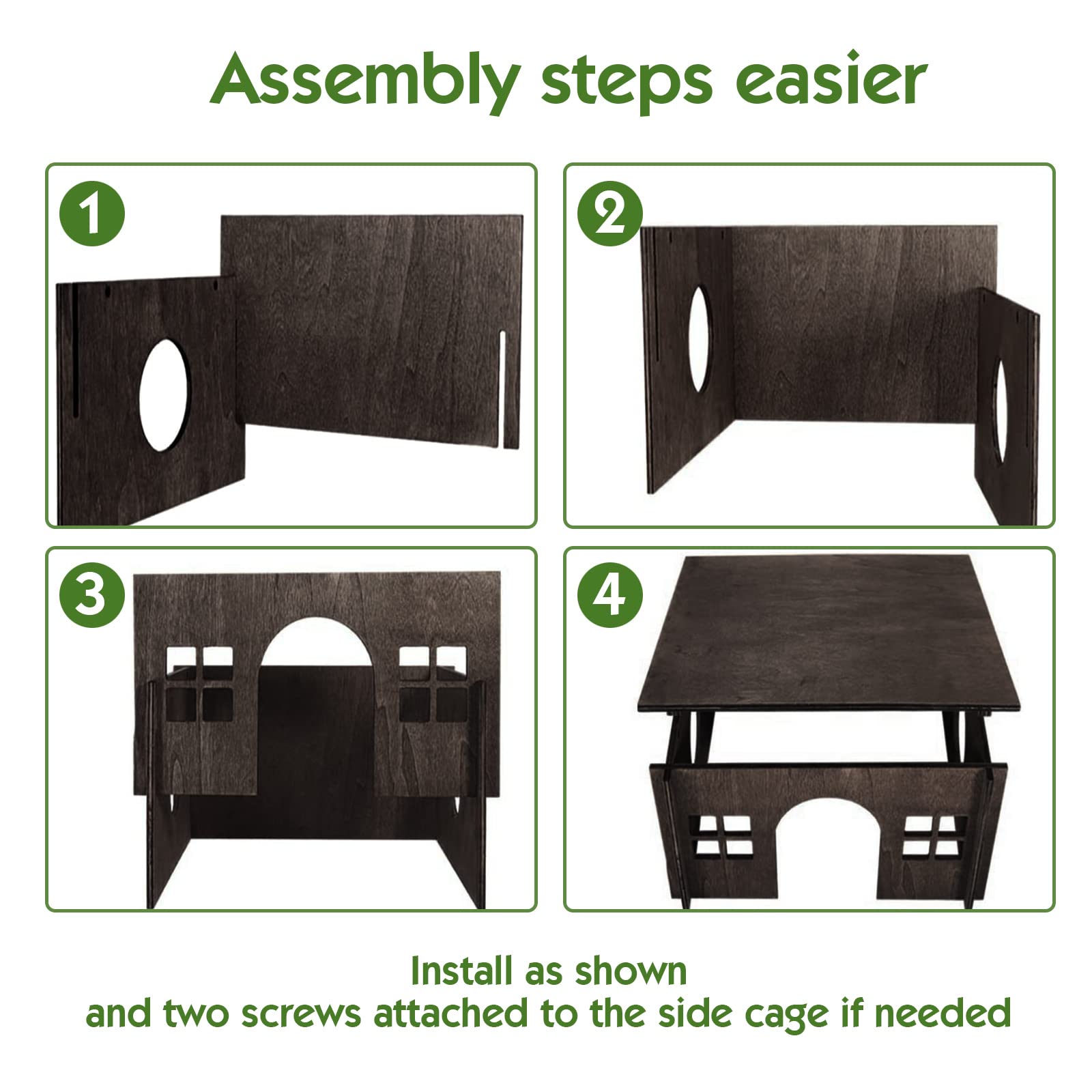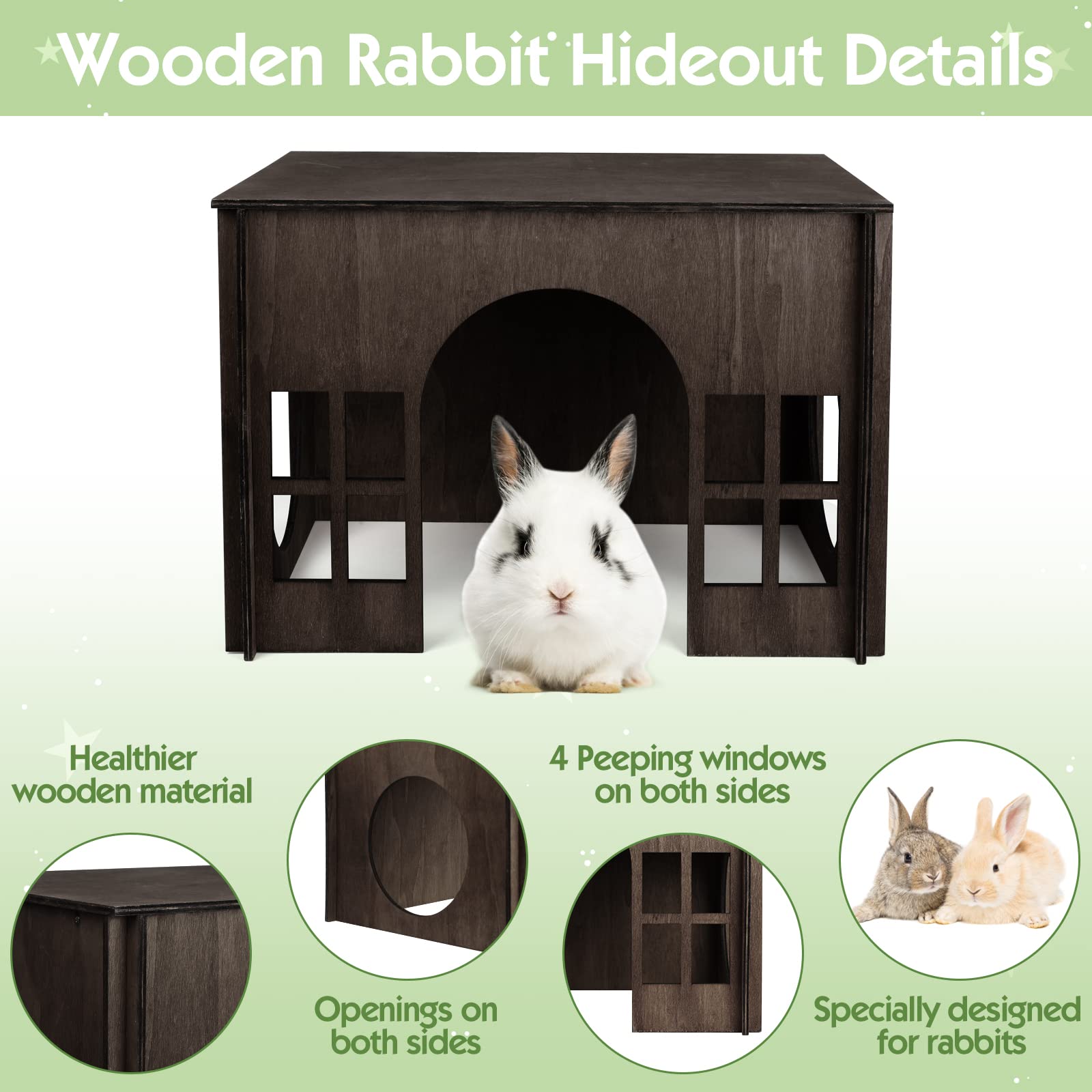 🐰【Premium Safety Materials】Our large wooden rabbit house and hideouts is made of high-quality safety plywood. Provide your dear pet with a natural sense of security to play, hide, rest and sleep.