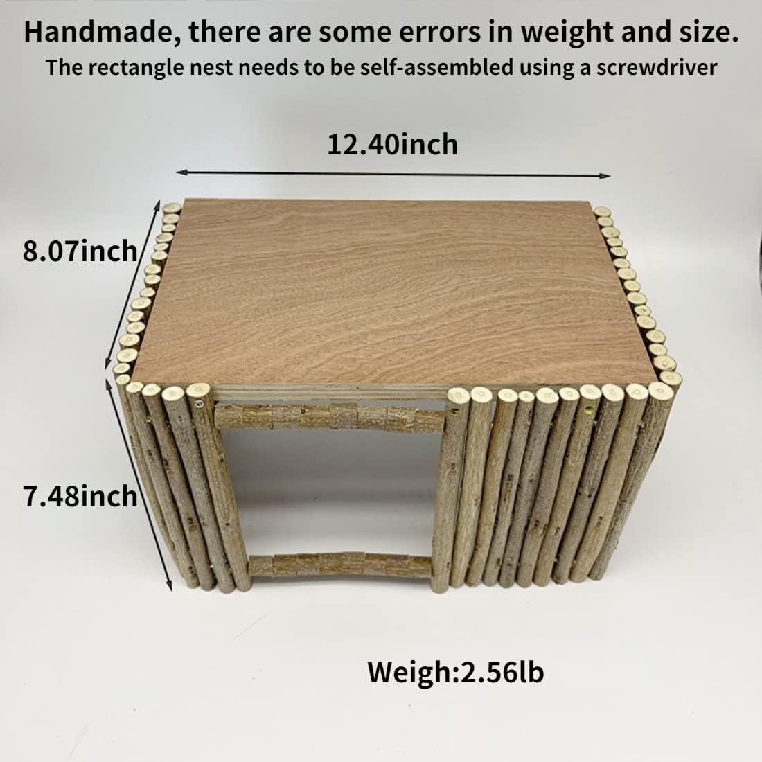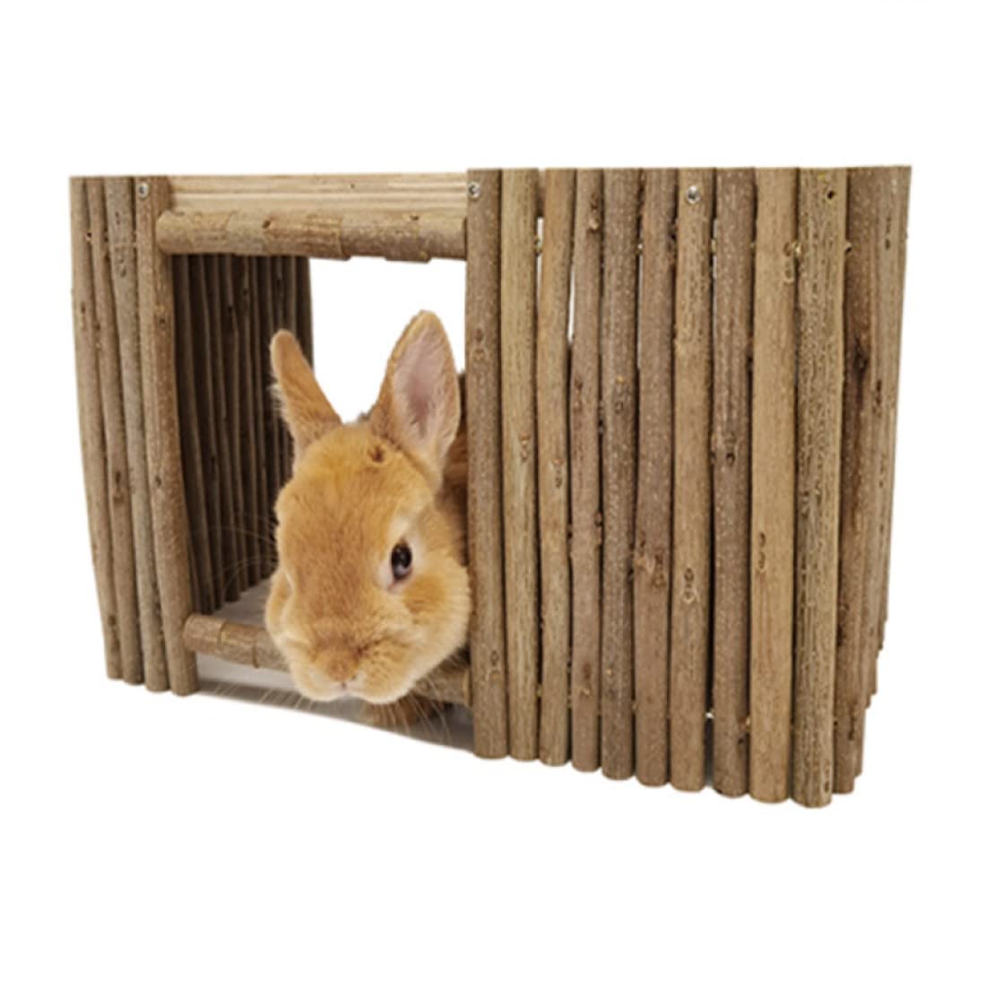 ENOUGH SPACE FOR YOUR PET -- Rabbit nest is 12.4 inches long, 8.07 inches wide, 7.48 inches high(arch : 9.06 L*7.87 W*9.45H inch ), and the Rabbit nest can be easily placed in most small animal cages. Natural wood bed, it is structurally strong and can be moved at will.