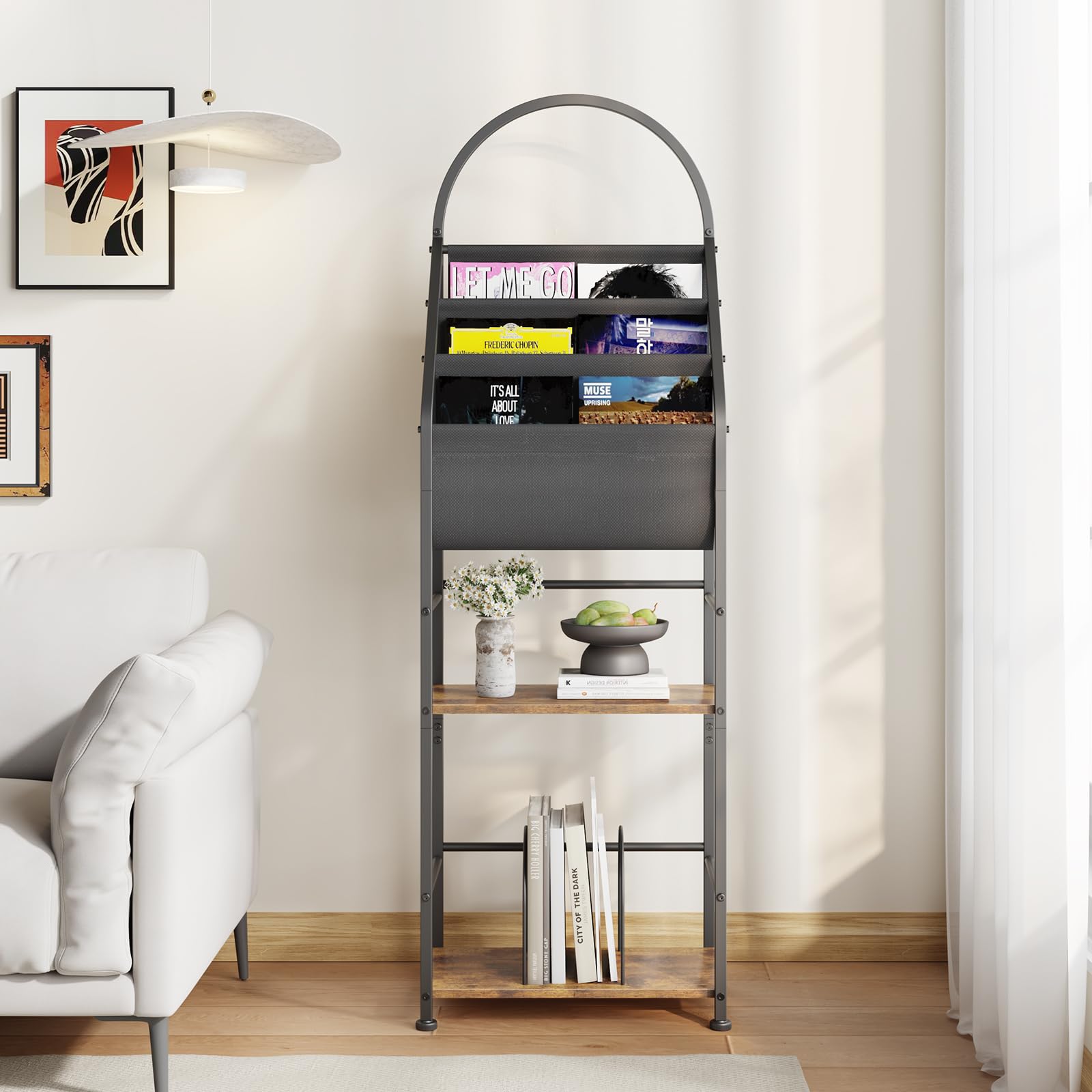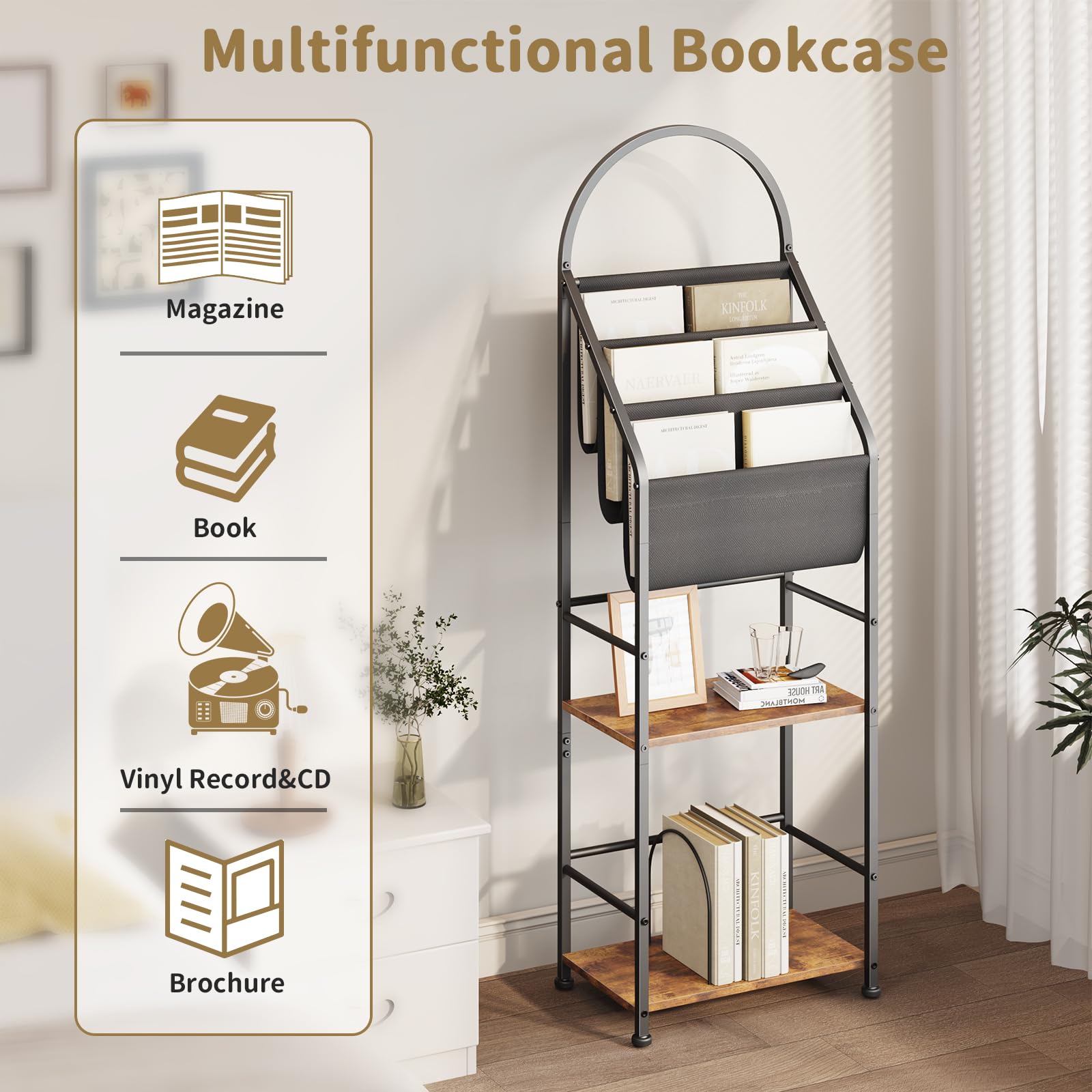 Unique Display Bookcase: The 3-slot design of the vinyl book storage stand offers sufficient space to store and display your vinyl or magazines visible yet tidily, which makes it easy to browse and select your records. Additionally, the top vinyl covers are on display according to your preferences and styles to show your taste and personality. It can be a practical vinyl record holder and an artistic home decor for your space. The unique design makes the vinyl shelf also work for magazines, books, CDs, brochures, and newspapers