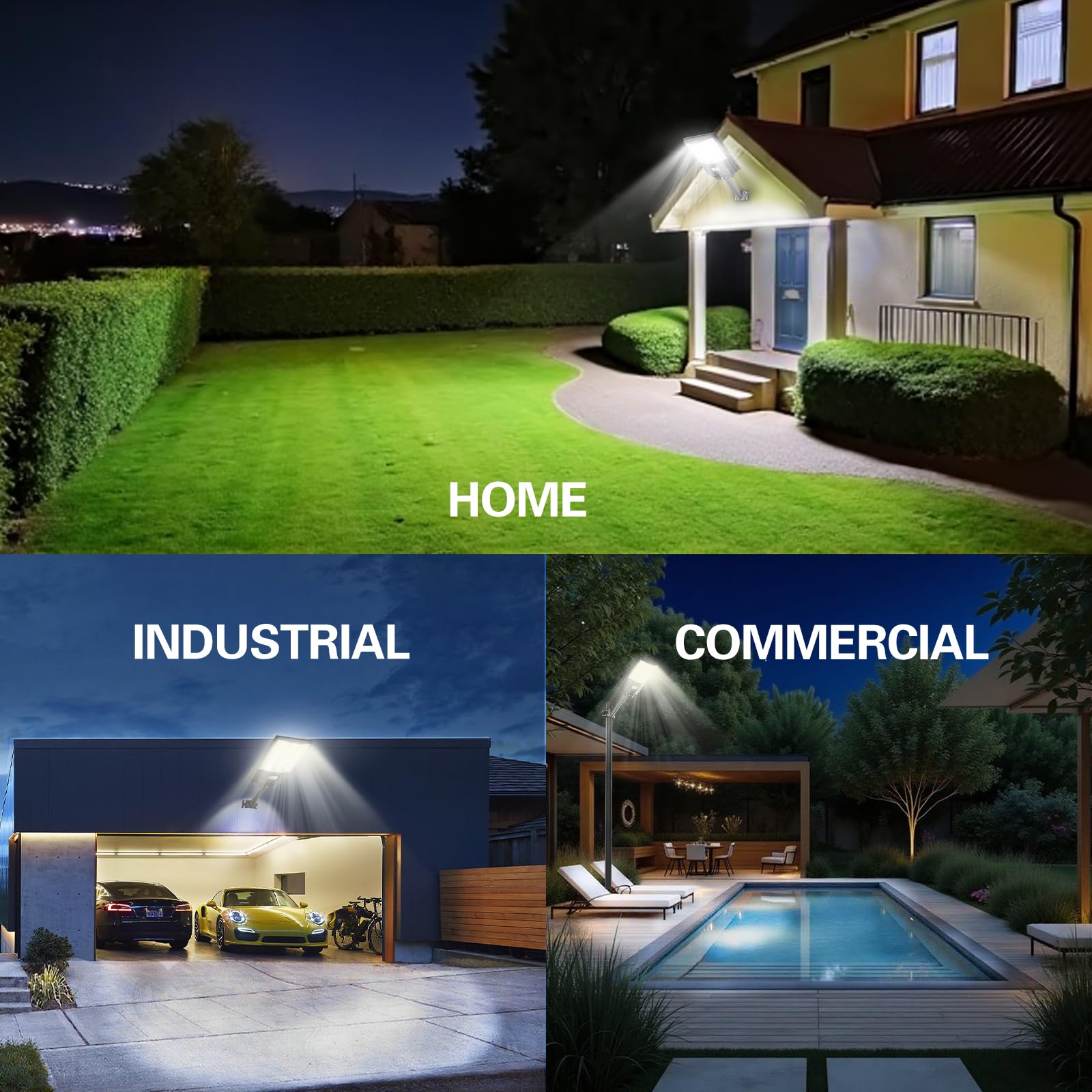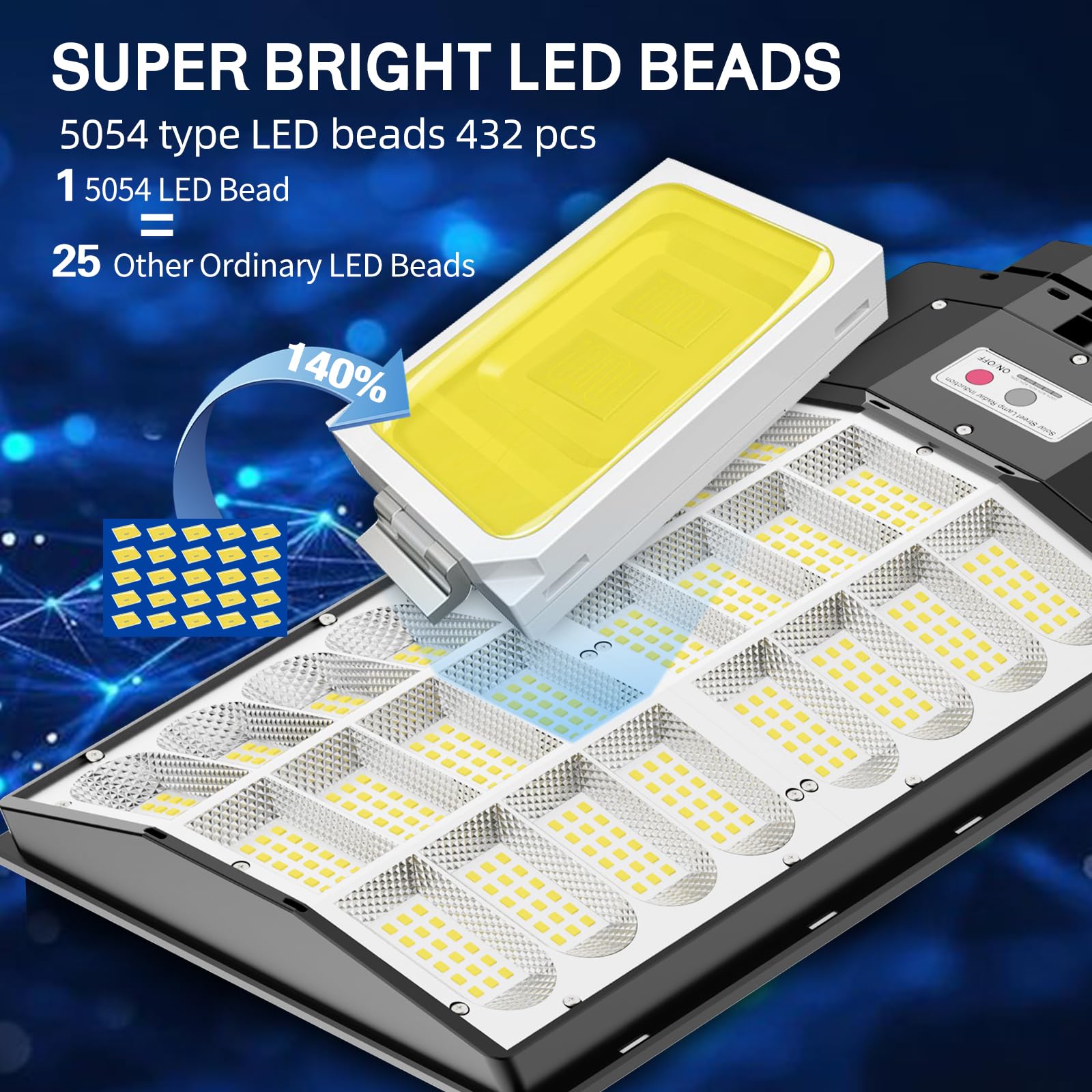 • Superior Brightness & Wide Coverage: Upgraded 5054 LED beads, brightness increased by 60%. High-efficiency LED street lights deliver 7000K 650000LM daylight, perfect as solar parking lot lights or street lights outdoor. Each solar street lamp illuminates up to 4000 sq ft.