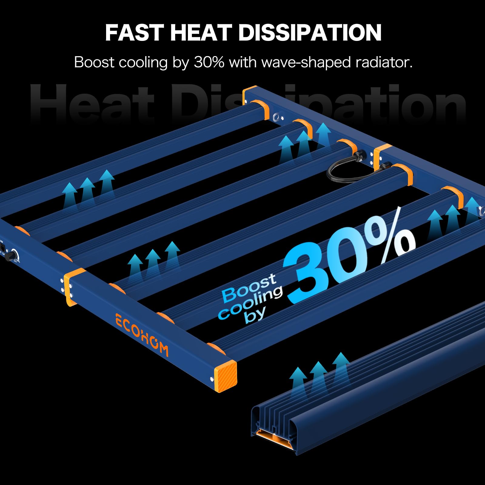 【Efficient Heat Dissipation Design】 The grow light design and aluminum heat sink on the back facilitate air circulation and rapid heat dissipation. Reduce ambient heat in the growing space. The foldable design of our grow light no need to assemble. Save your time and space during installation, storage, transportation.