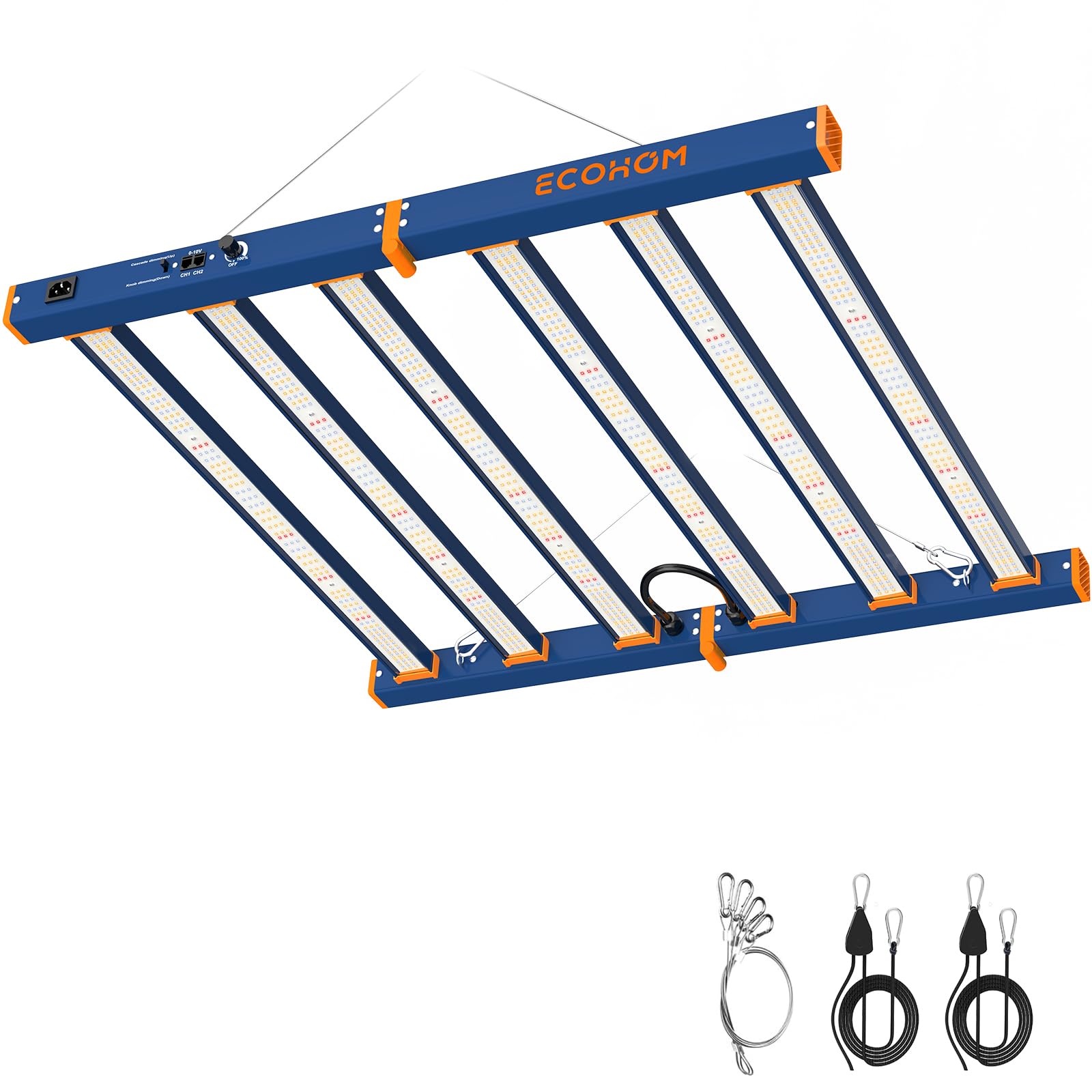 【Dimmable & Daisy Chain Design】 Easy dimming, ranging from 0-100% dimming to meet the needs of Plant Growth. giving you full control over the intensity of light for different stages of plant growth. the daisy chain function supports growers to connect up to 25 grow lights to control them dimming at the same time. no need to buy controllers, just use the daisy chain to link all the lights, then dimmable one light , all lights follow. Unfold to use, flexibility for growers in any setting.