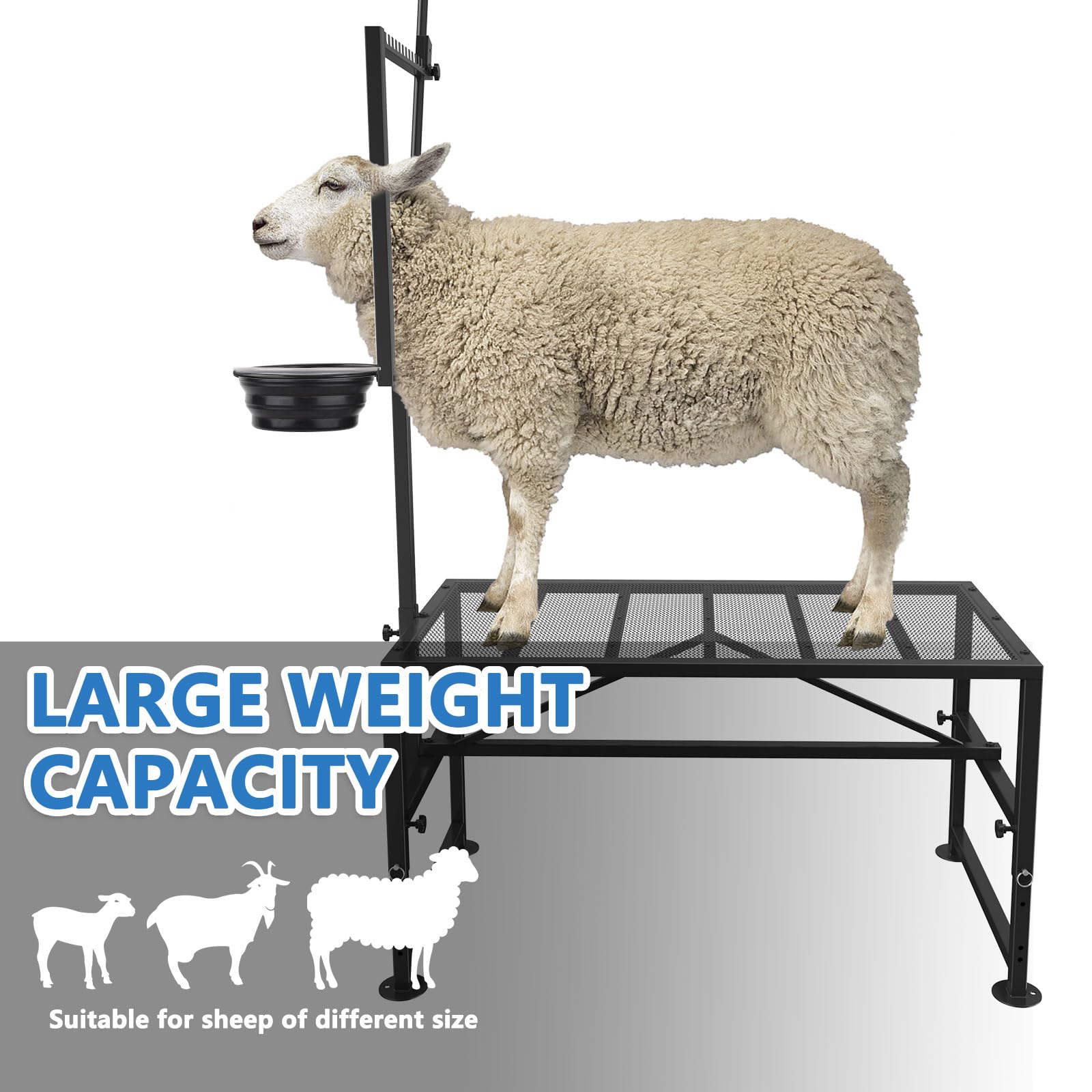 Sturdy 600LBs Goat Milking Stand: Two additional load-bearing beams have been added In order to reinforce the expanded metal and to support up to 600LBs for adult sheep; The stable triangular frame design makes the sheep rack very sturdy and stable