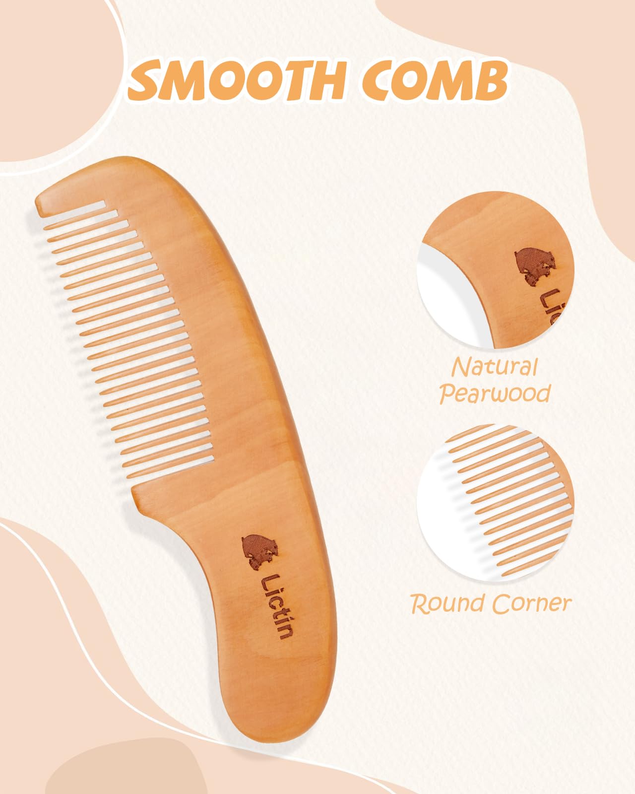 Natural Baby Brush & Comb Set - We use natural goat soft bristle brush with beech wood and pearwood for all baby brushes and baby combs. Our Lictin baby hair brush set is handmade with love and perfectly safe for newborns, toddlers and children.