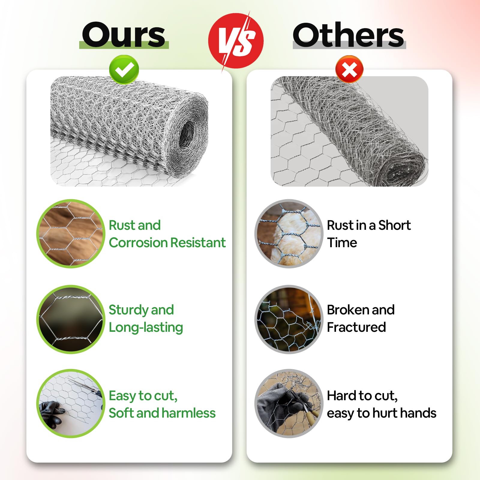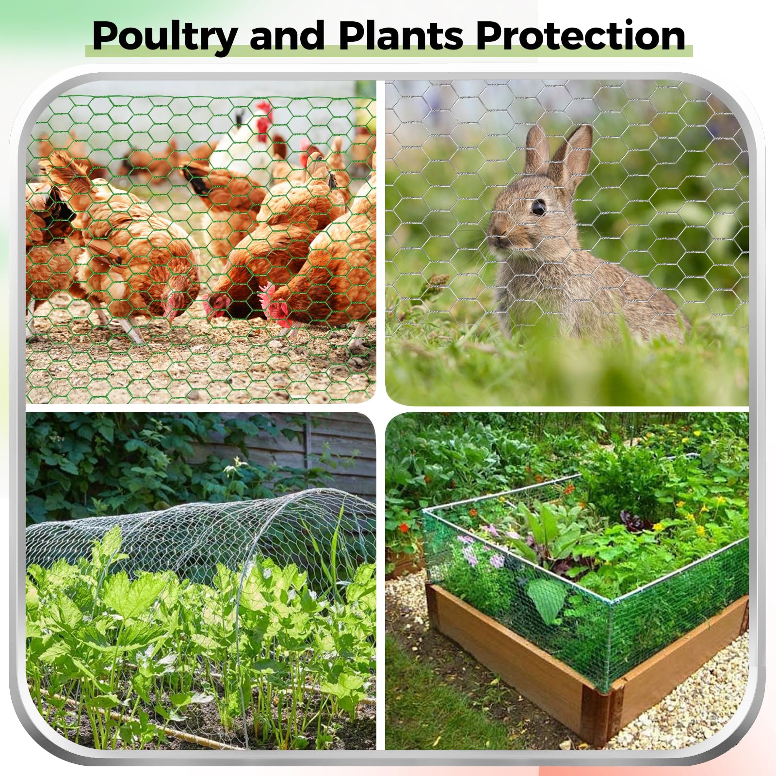 【Anti-Rust and Sturdy】 This chicken wire fencing adopting double-layer hot-dip galvanized coating technology, so galvanizing after welding ensures that all welding points are galvanized for maximum rust resistance. And designed with double direction hexagonal twist, sturdy and equally spaced, it's more durable and not easy to break.