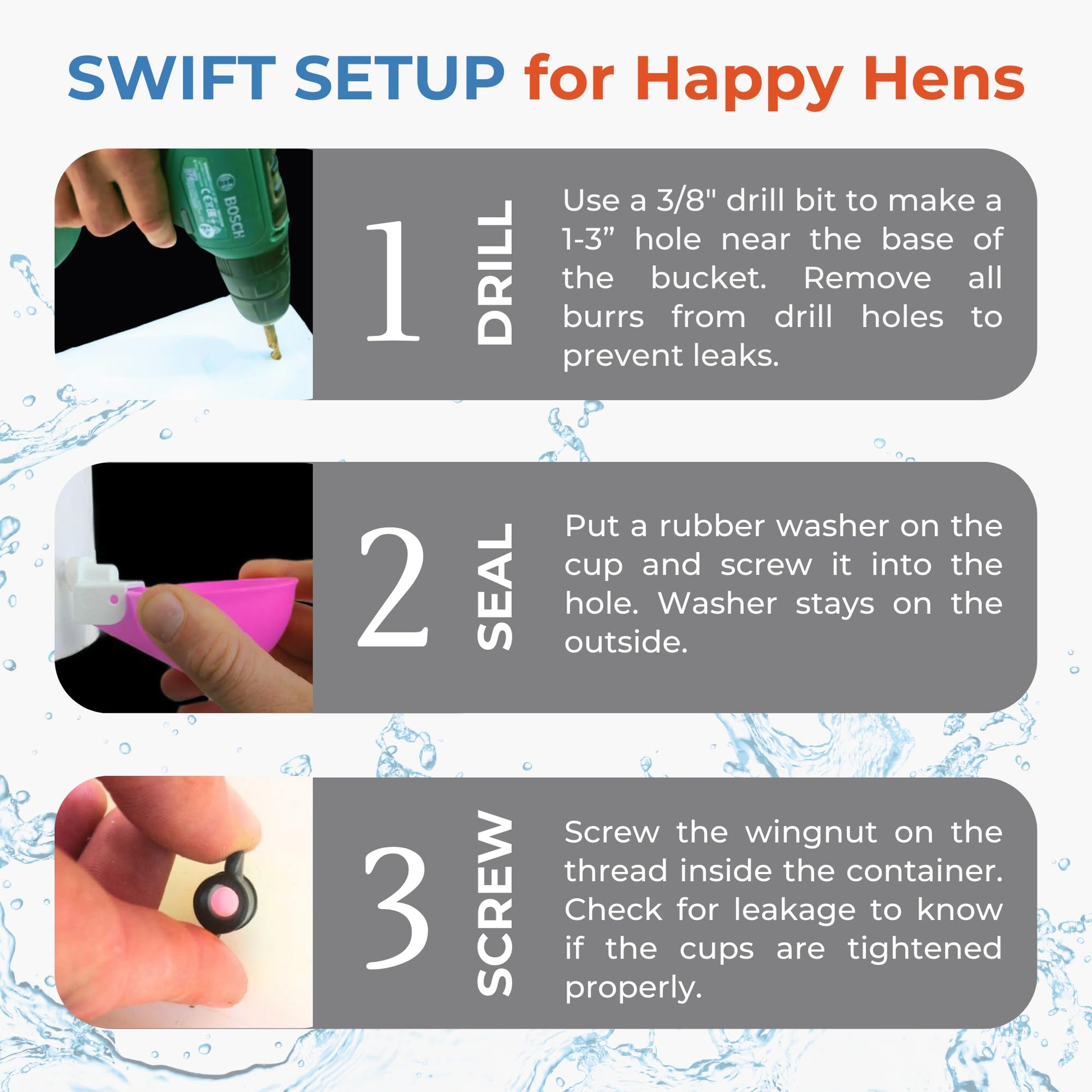 Simple, No-Fuss Installation – Set up your automatic chicken waterer in minutes! Just drill 3/8" holes in your container or 5-gallon bucket, and you're done. Perfect for first-time poultry keepers or experienced farmers needing a reliable chicken water feeder solution.