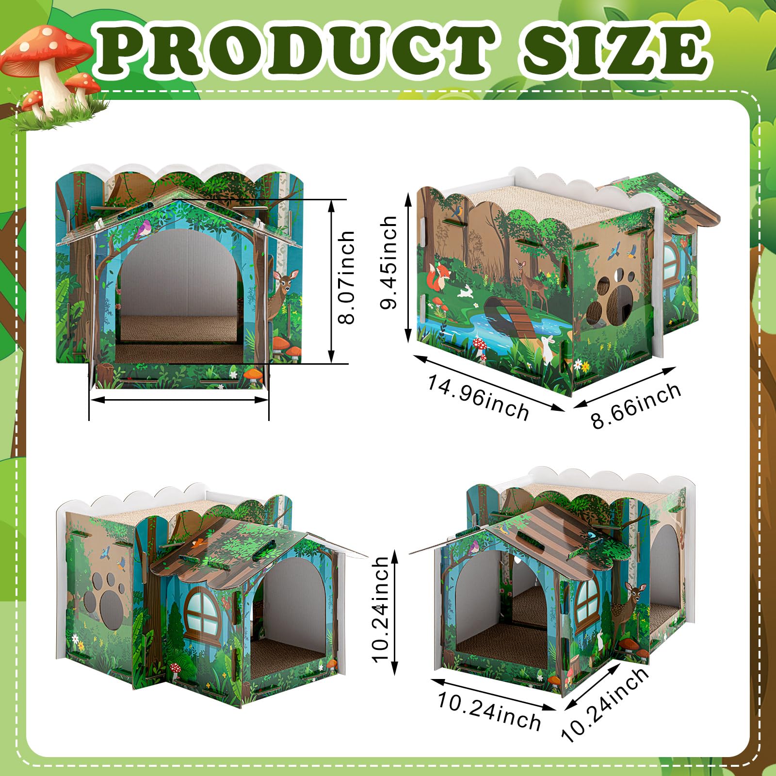 Sturdy and Easy Assembly: crafted from five layers of corrugated cardboard, our forest themed cute cardboard cat house is built to last; And it comes with comprehensive instructions and detailed diagrams, making assembly a breeze; No additional tools are required, ensuring an effortless setup process