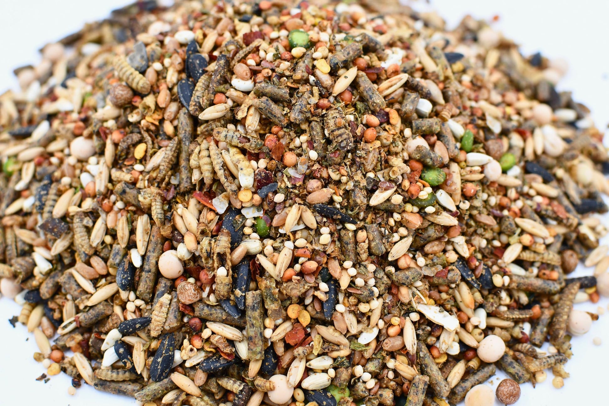 π₯ Dried Mealworms. Delivering 16.58% PROTEIN and fortified with flax for valuable Omega 3's to support health and egg production. Our blend of Flax, Black Oil Sunflower & Safflower seed create shiny feathers.