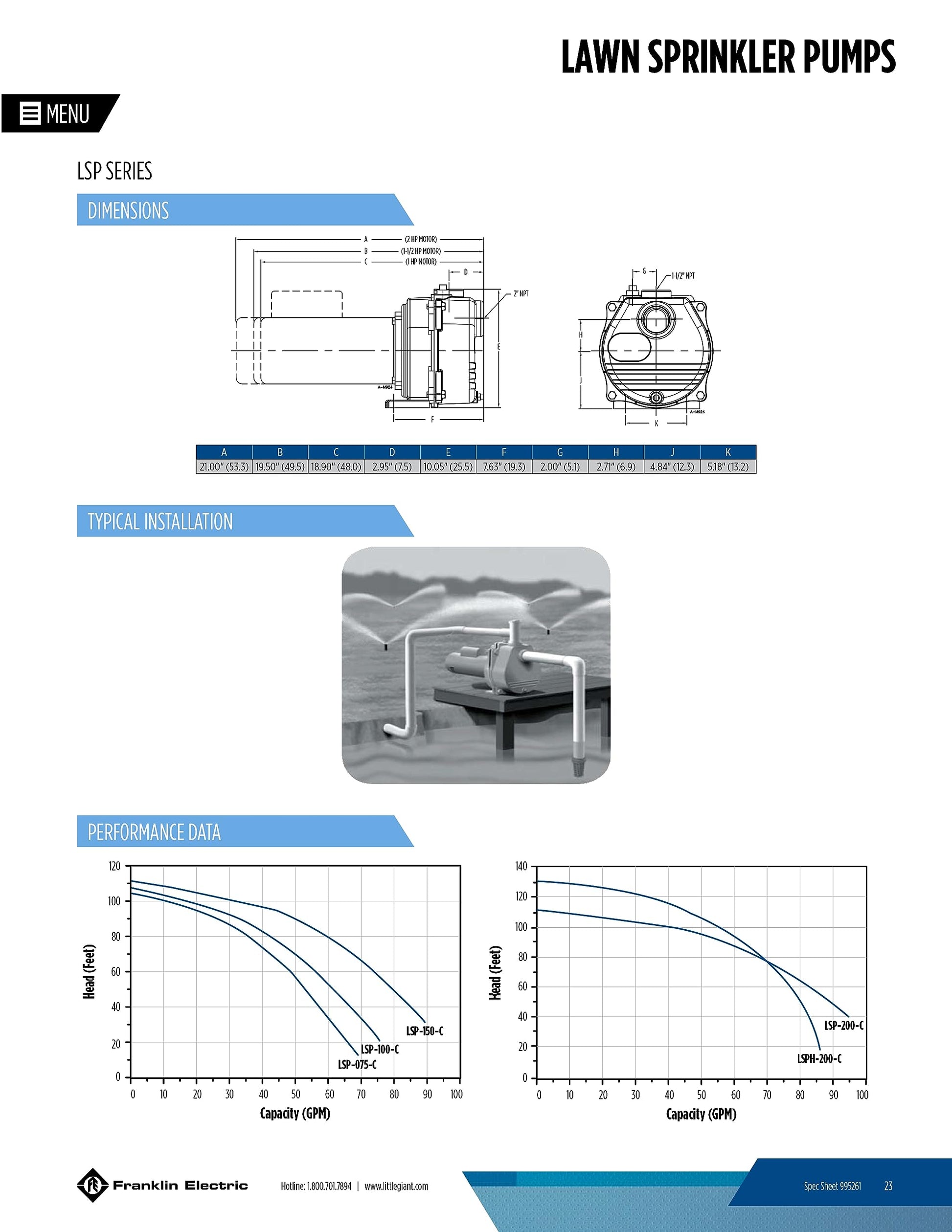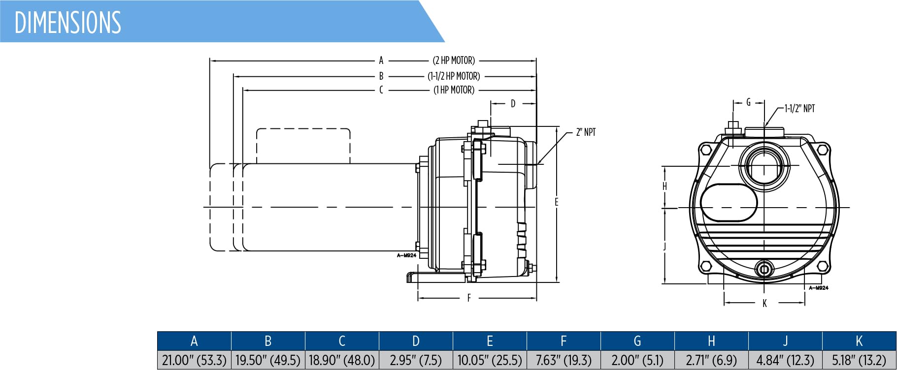 BUILT TO LAST: Rugged cast iron pump housing and seal plate; brass impeller for well water (down to 25-feet deep), lake water, ditch water, and weirs