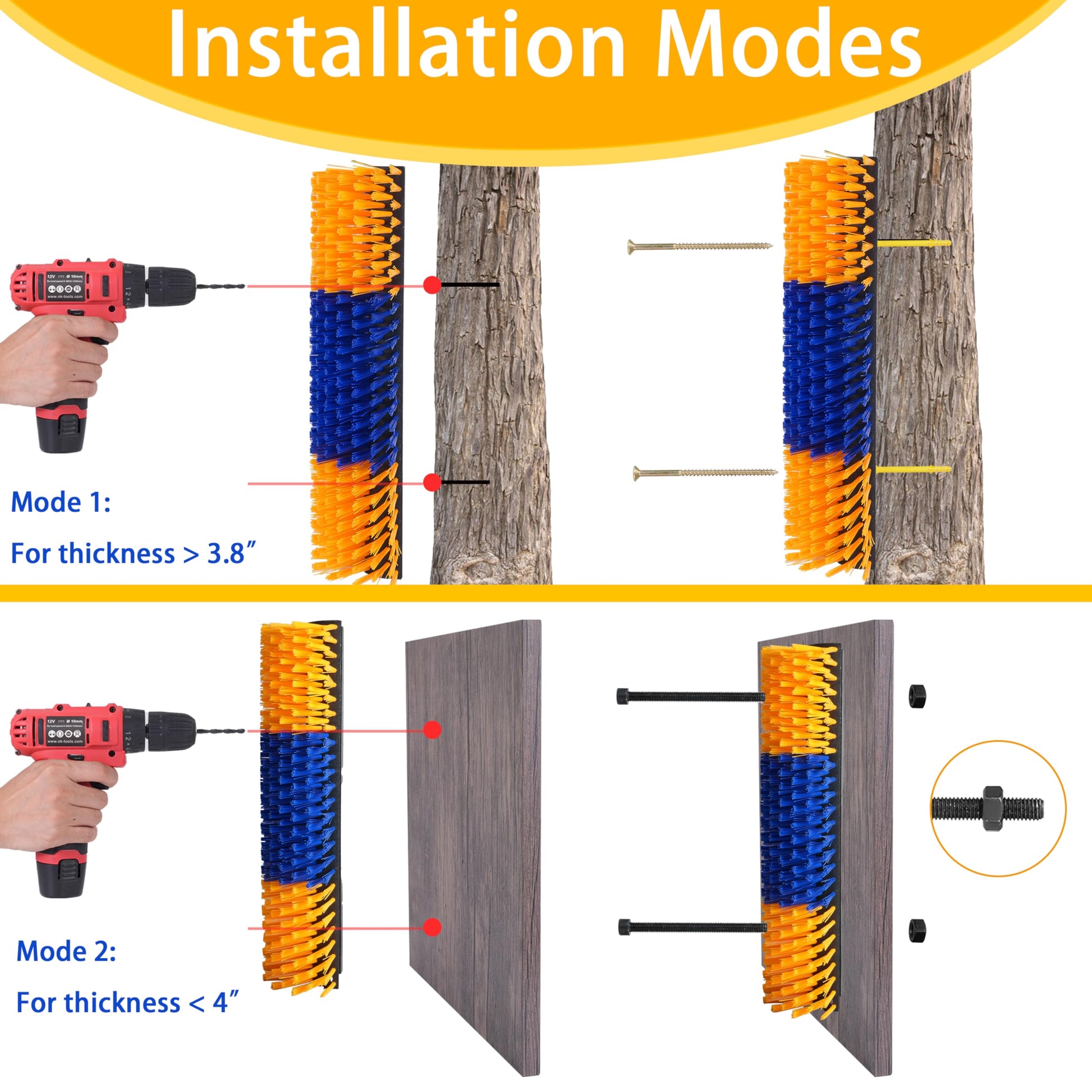 đăEasy to InstallăRUSIW horse brush comes with 2 types of screws, it is a breeze to mount it to anywhere around the barn, pasture,livestock pen,horses stall, trees, post or outdoors,it also be simple to remove if we decide to relocate it.