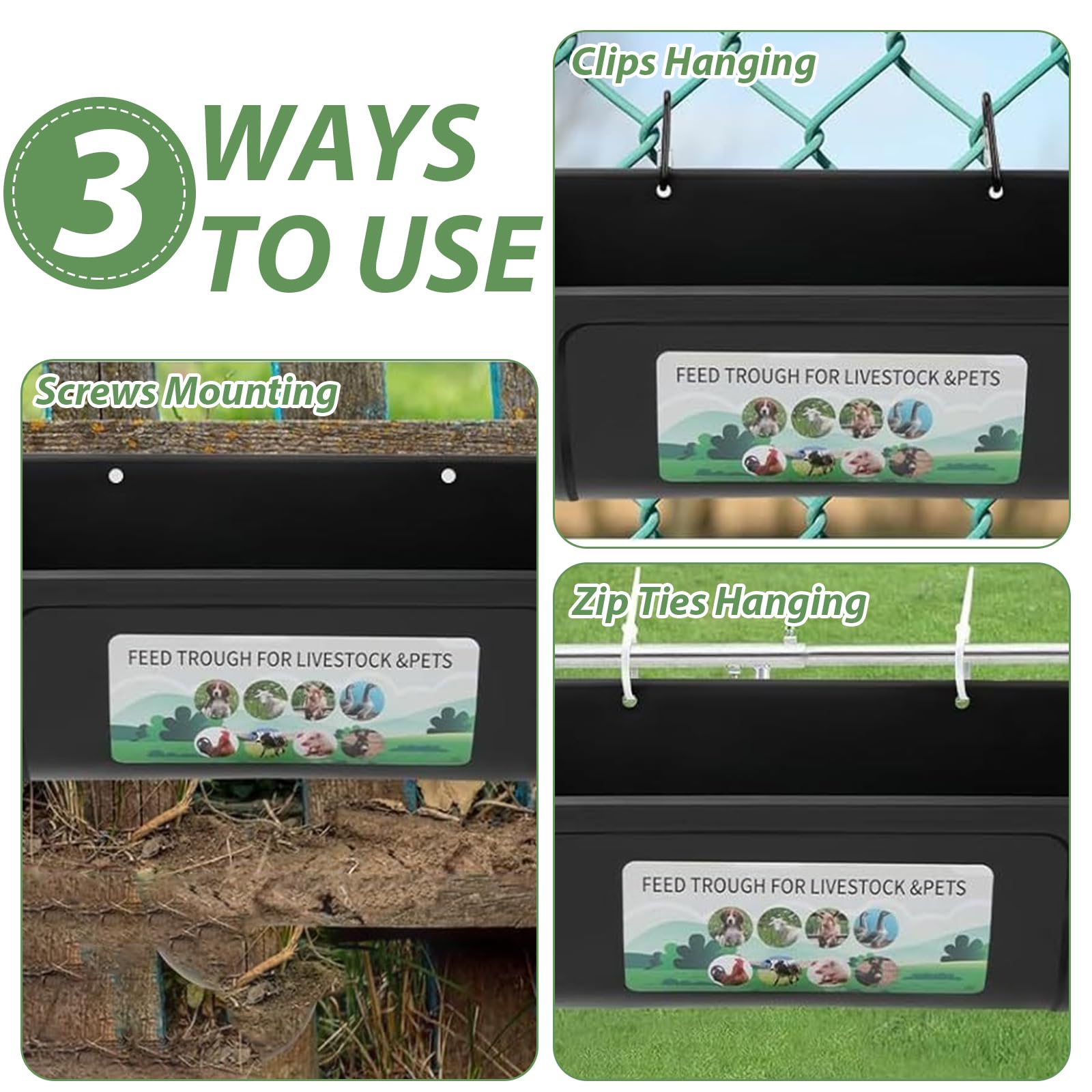 Widely Applications: Our black goat feeder hanging are ideal for larger livestock and small poultry, including goats, sheep, pigs, deer, mules, and peacocks. The attractive appearance render them perfect for planting, adding a touch of beauty to your otherwise plain fence