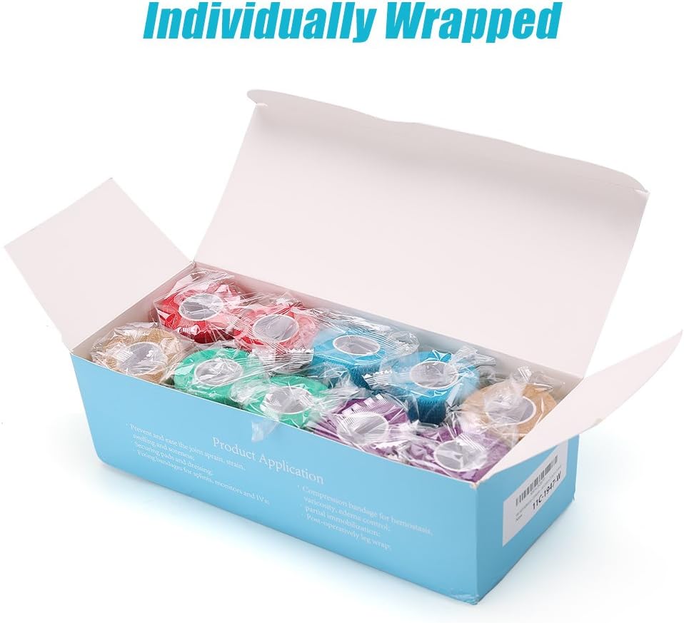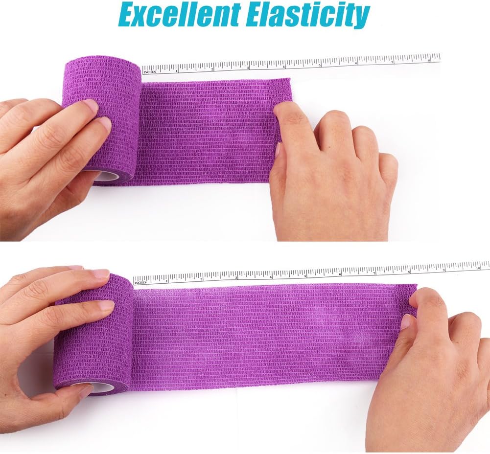 ASSORTED VET WRAP TAPE: Totally 10 self-adhering bandage tapes, 2 red + 2 blue + 2 purple + 2 tan + 2 green offers great fun for decorating