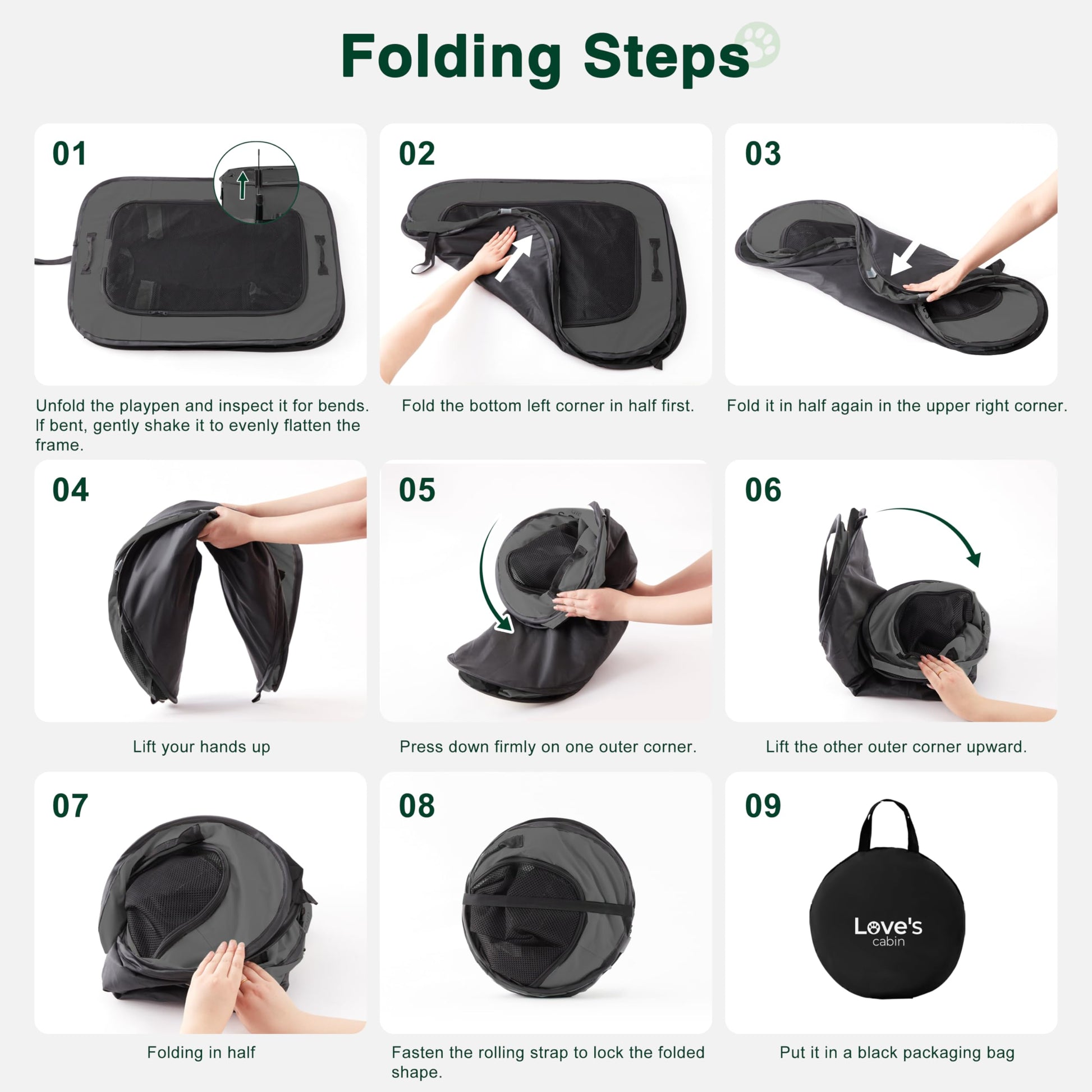 Easy to Assemble and Store: The Portable Pet Play Pen comes along with a convenient carrying case that can easily store your playpen. Follow the instructions,you can assemble it in just 30 seconds. And it's also easy to fold back flat when not in use. Our lightweight portable pet playpen can be used indoors, outdoors, traveling, camping, etc.