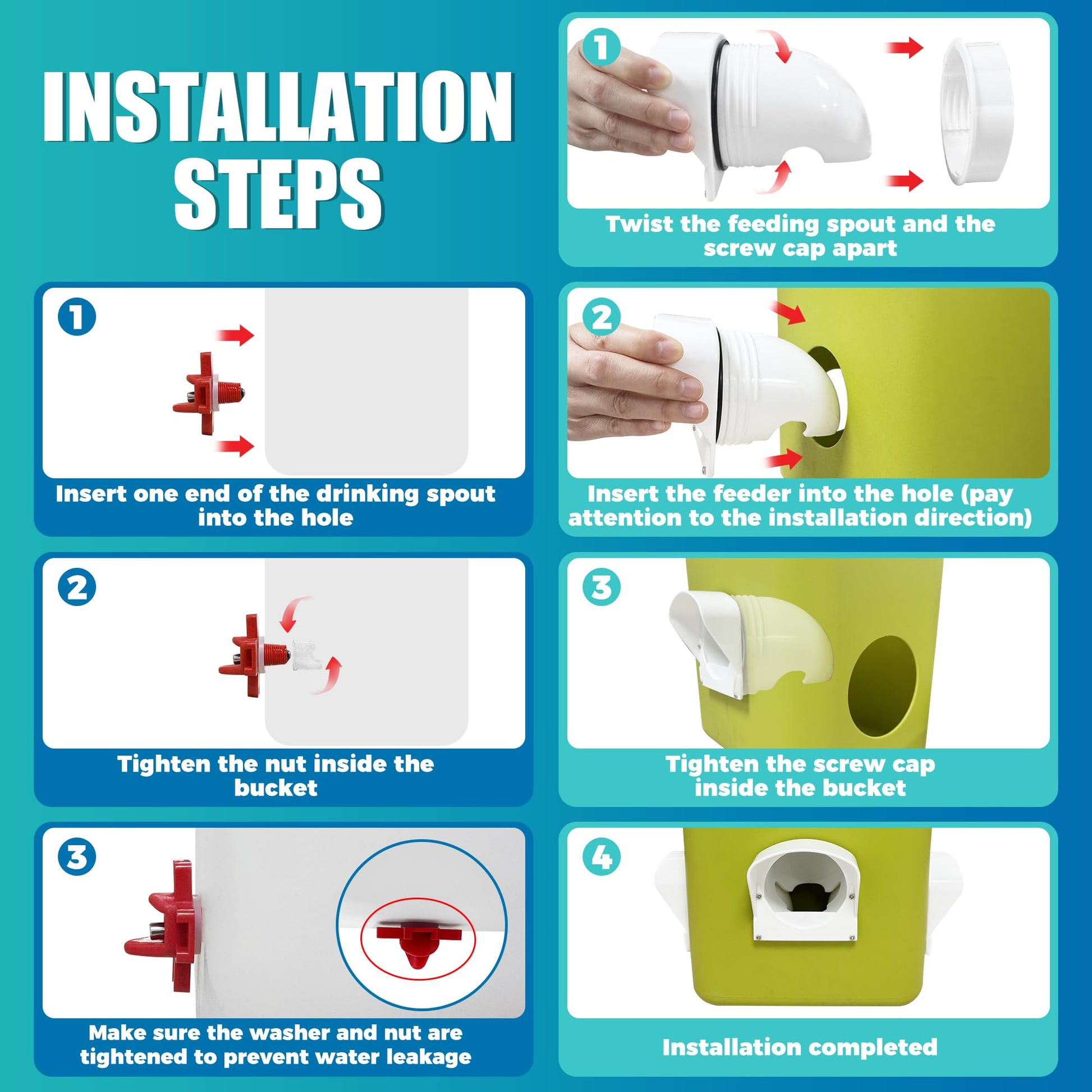 Convenient and Efficient Poultry Feeding and Watering Kit: Loyala Chicken Feeder and Drinker Set includes a 22-pound feeding bucket and a 3-gallon drinking bucket, with 3 feeding ports and 4 drinking ports respectively. For those who have little time and busy schedules, automatic chicken feeders are undoubtedly the most efficient and economical way.