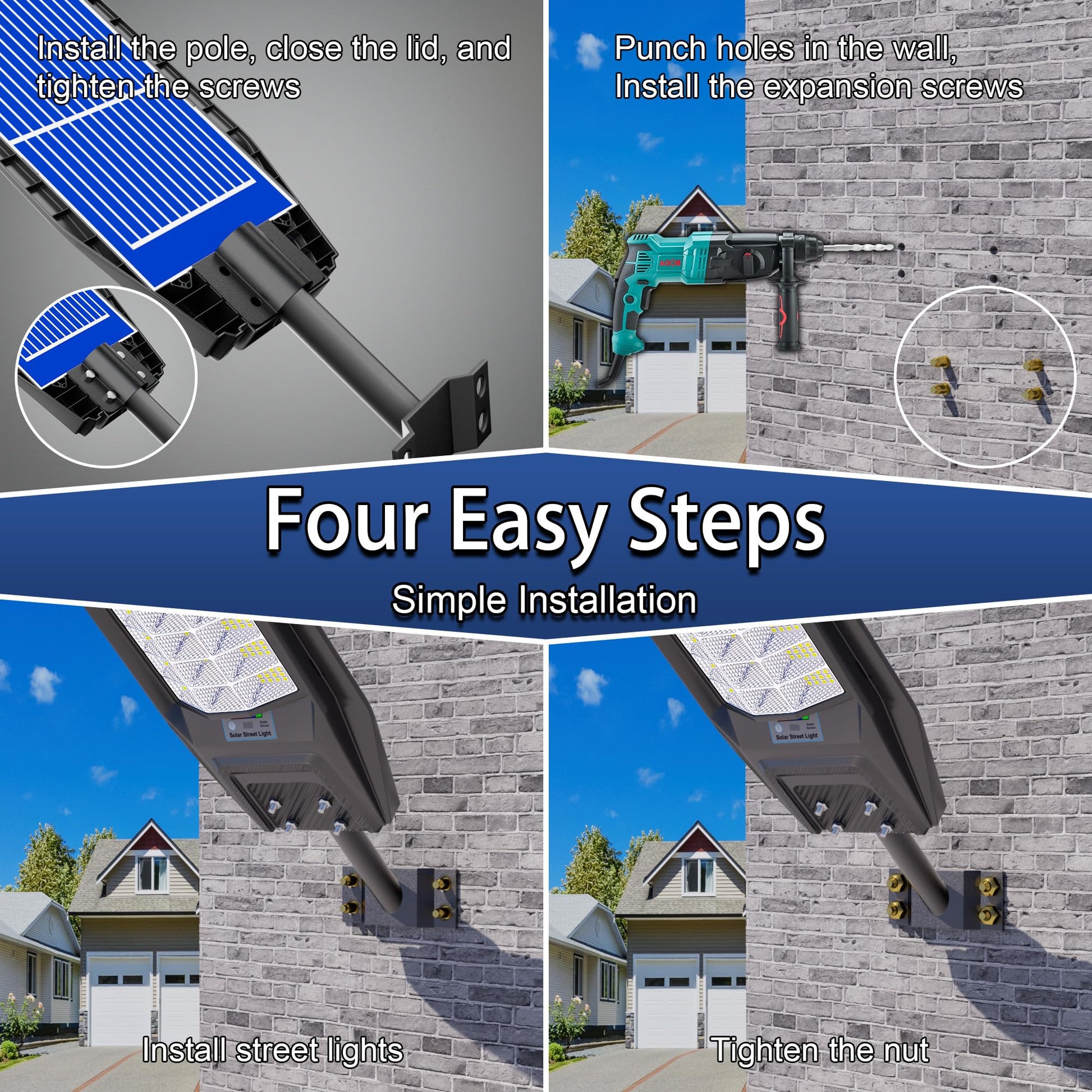 Easy Installation & Wide Application: The package includes all necessary installation accessories,LED street lights easy installation, screw fixing,dependable operation without the need for wiring or trench.Ideally suited for various outdoor areas such as streets, roads, parking lots,basketball courts,garages,gardens,courtyards,squares,and where you want to install