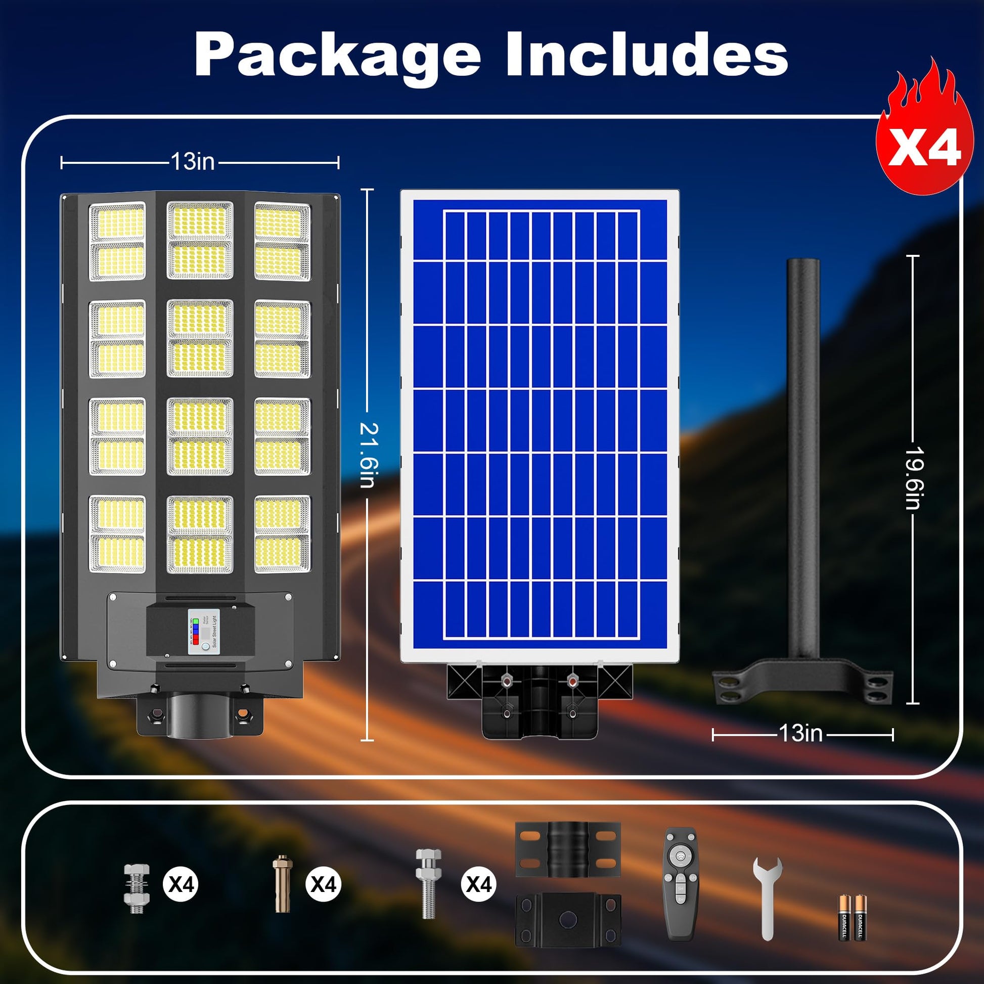 loyoele 8000W 4-Pack Solar Street Light,Solar Street Lights Outdoor Waterproof, 240000LM 7000K Solar Powered Street Light,Dusk to Dawn,with Motion Sensor,LED Wide Angle Lamp