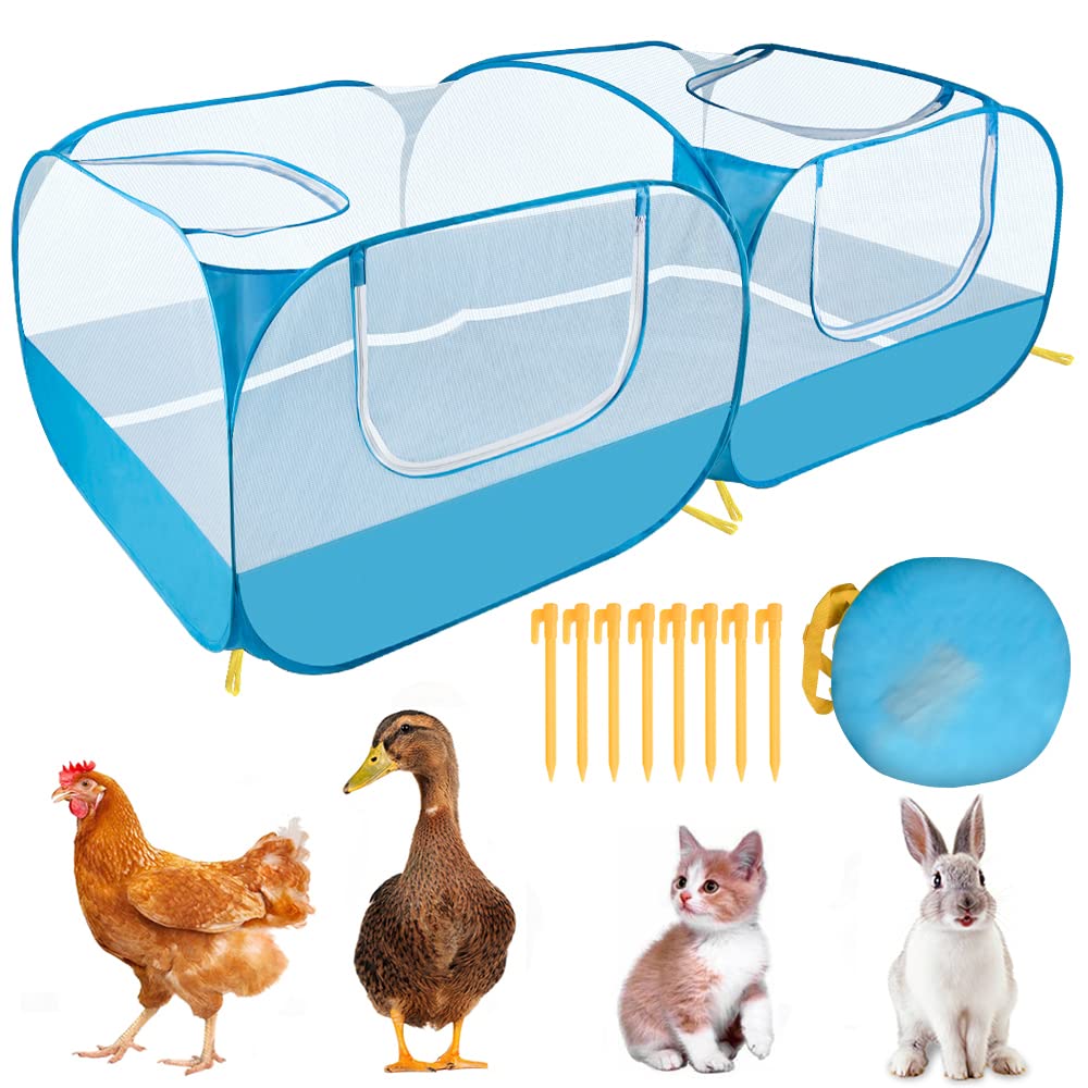 Both Outdoor & Indoor Use --- The breathable mesh fabric of the guinea pig cage provides better ventilation, keeps your pet closer to nature and protects them from annoying bugs when used outdoors. Indoors the tent is ideal for dogs, cats, isolating an injured pet, or introducing a new pet. Suitable for raising chickens, ducks, rabbits and other small animals.