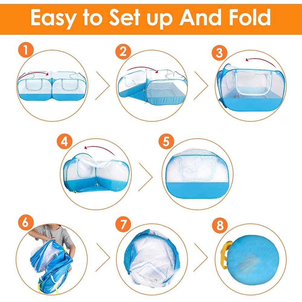 New Generation with Detachable Bottom --- The bottom of the pet playpen can be removed, so that the small animals are closer to nature when used outdoors. The removable bottom can be used as a sunshade cover on the top of the cage to provide additional sun protection.