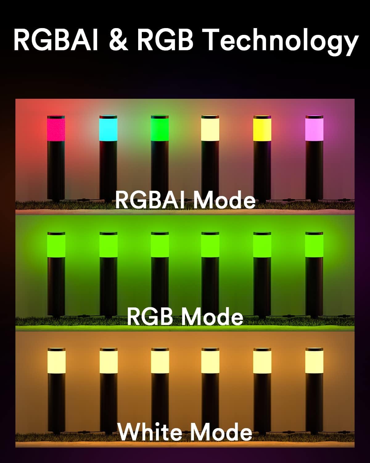 • RGBCCT: With advanced RGBAI technology, enjoy warm or cool white tones, or light up your space with 16 million colors.Preset/custom scenes and 1-100% brightness let the smart outdoor pathway lights set the perfect ambiance