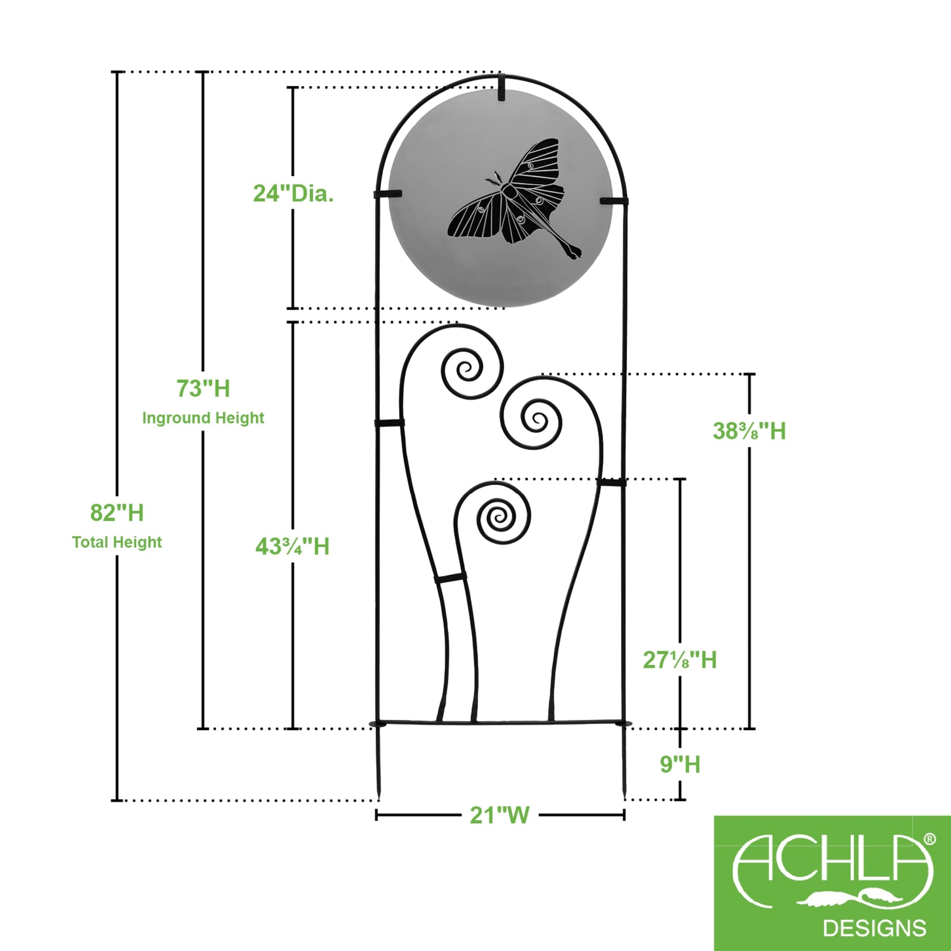 • 24-in diameter moon, and 9" spiked legs that sit below ground, measures 82-in H total x 21-in W